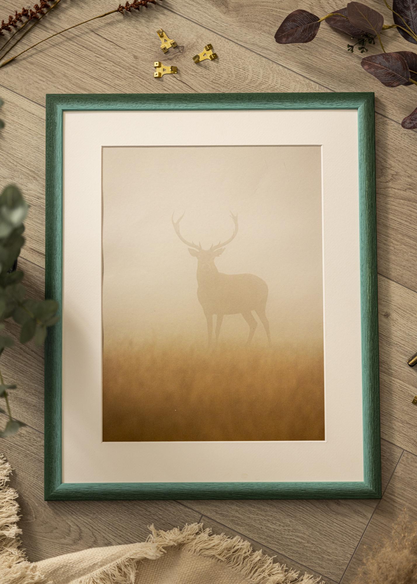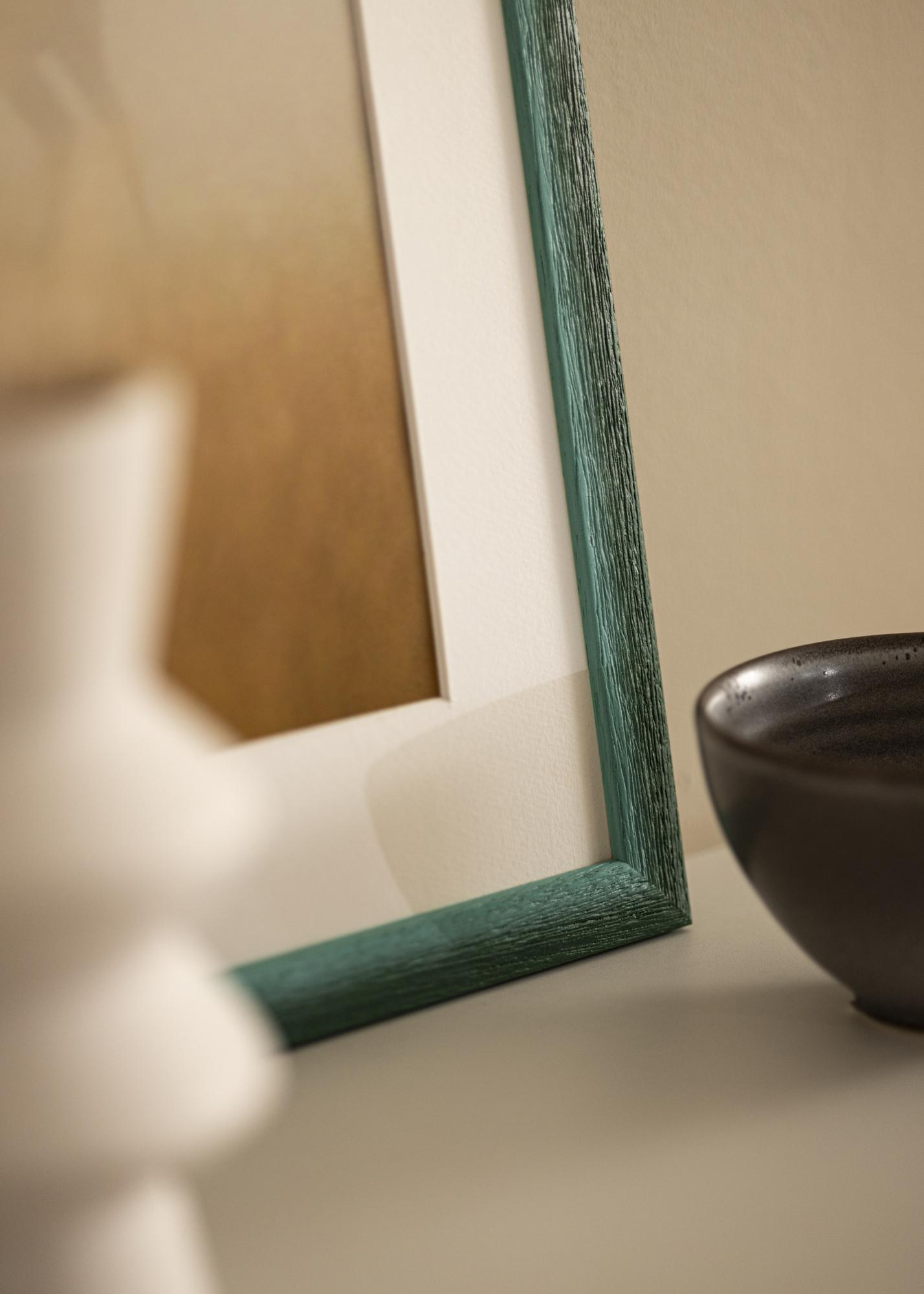 El color verde atenuado tiene variaciones sutiles que proporcionan una expresión viva y natural, mientras que la estructura prominente de la madera con vetas profundas crea una sensación rústica. La superficie tiene un acabado mate que suaviza la intensidad del color y ofrece una impresión suave, lo que permite que tus imágenes realmente estén al centro de atención. El perfil delgado equilibra el aspecto rústico con una simplicidad moderna.