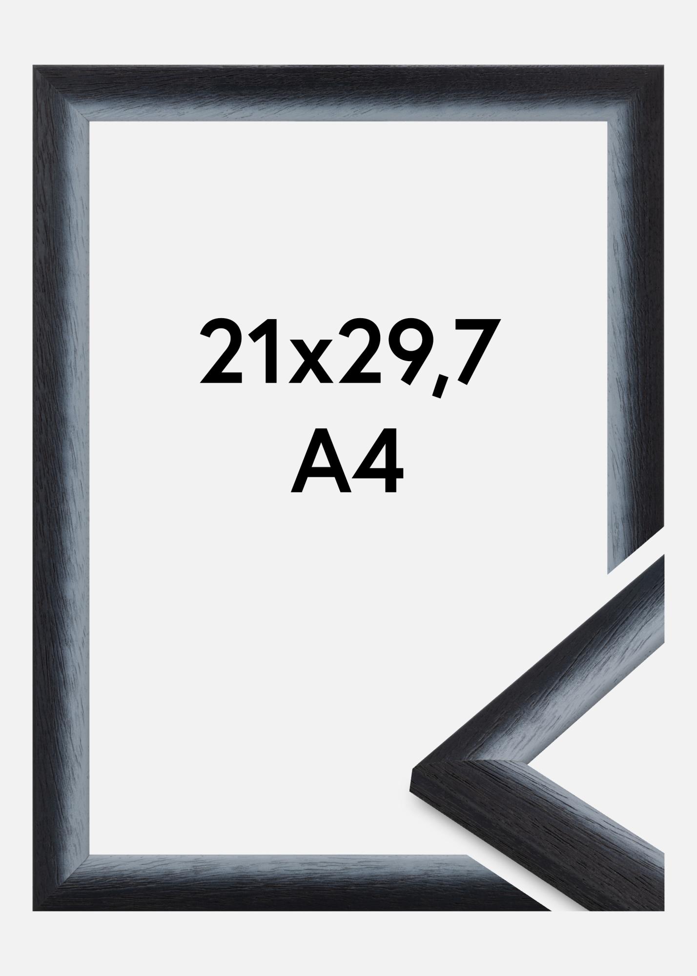 Este elegante Marco de madera Negro es perfecto para resaltar tus motivos favoritos en tamaño 21x29,7 cm (A4). Con una moldura de 23 mm de ancho y 13 mm de profundidad, ofrece un diseño moderno y elegante que encaja en la mayoría de estilos de decoración. El acabado mate en un profundo tono Gris oscuro realza la textura natural de la madera y aporta una expresión sofisticada.