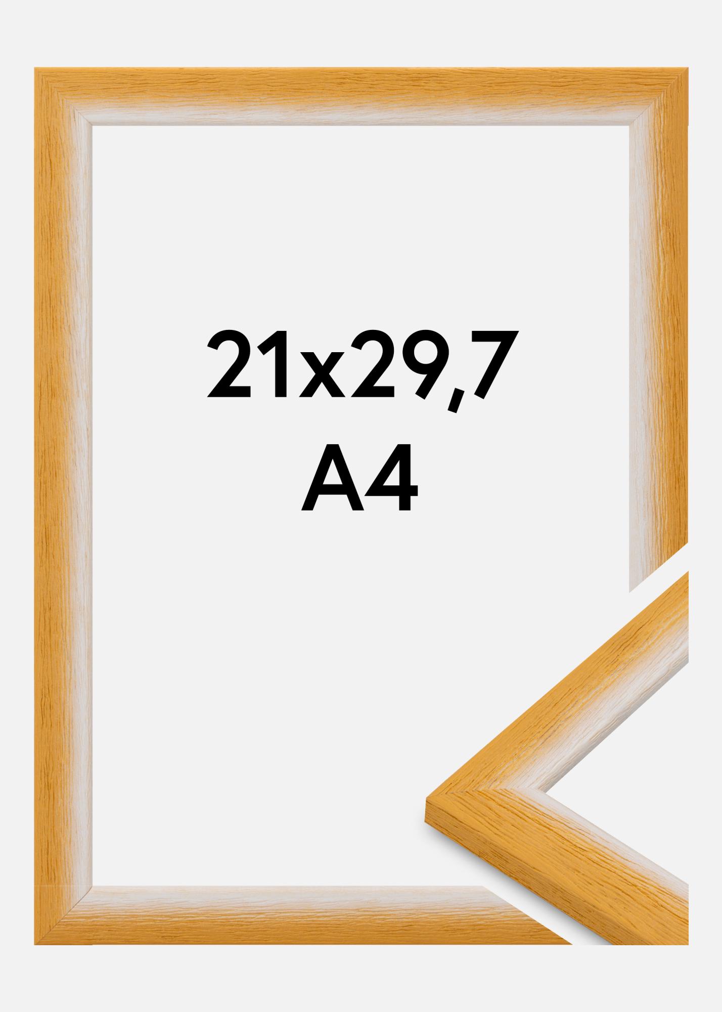 Este Marco para fotos en tamaño 21x29,7 cm (A4) es una combinación perfecta de diseño moderno y elegancia clásica. Con un cálido tono Amarillo y una superficie lisa, resalta la textura natural de la madera de forma sutil. El perfil estrecho, con una moldura de 23 mm y una profundidad de 13 mm, aporta una expresión elegante y minimalista que permite que tu motivo sea el protagonista.