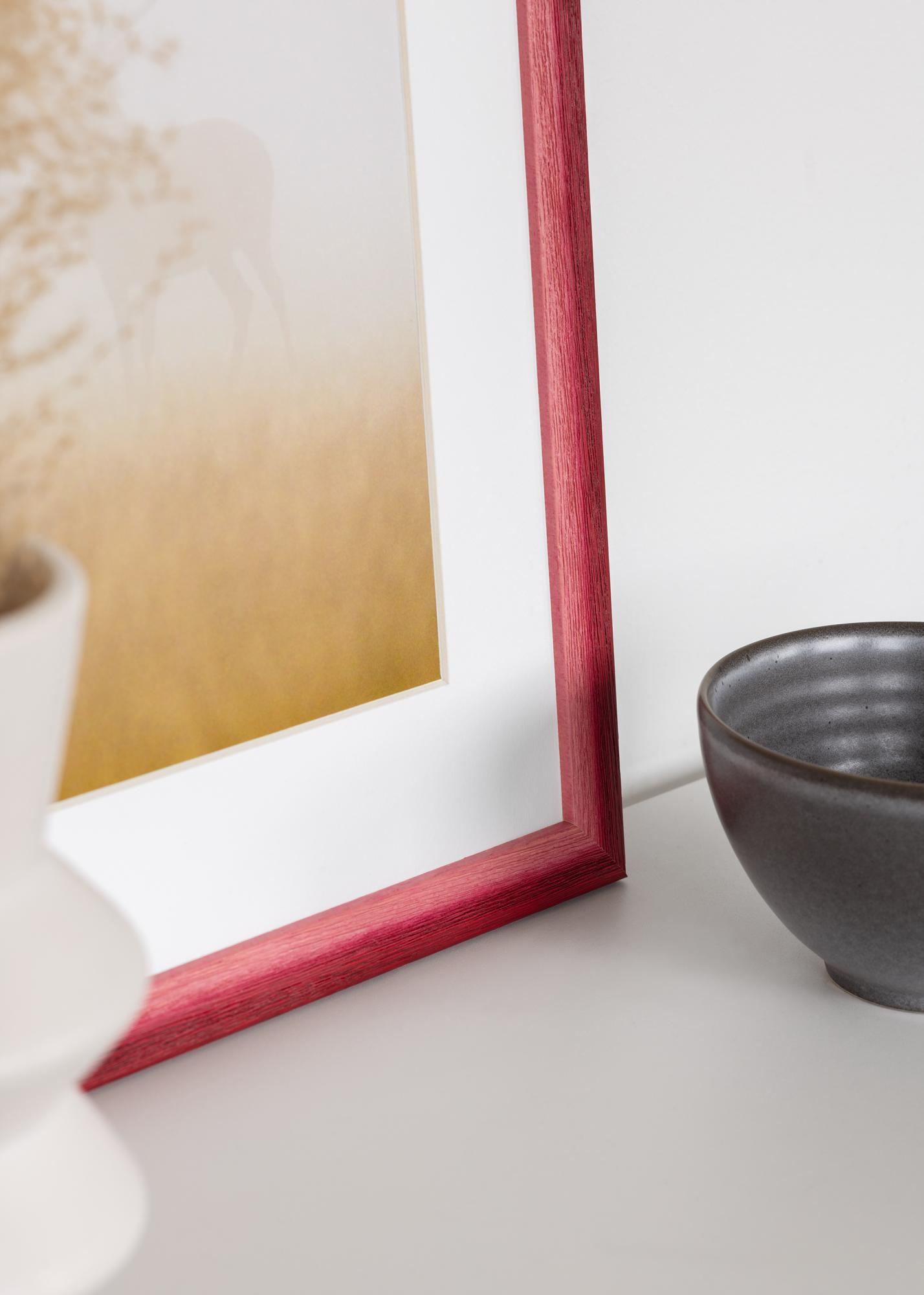 Este Marco para fotos de 40x50 cm es una combinación perfecta de diseño moderno y elegancia clásica. Con su superficie lisa en un tono Rojo Rosa, resalta la belleza natural de la madera y aporta una expresión sofisticada. El perfil estrecho de 23 mm y una profundidad de 13 mm hacen que el motivo sea el verdadero protagonista, ya sean fotografías o pósteres.