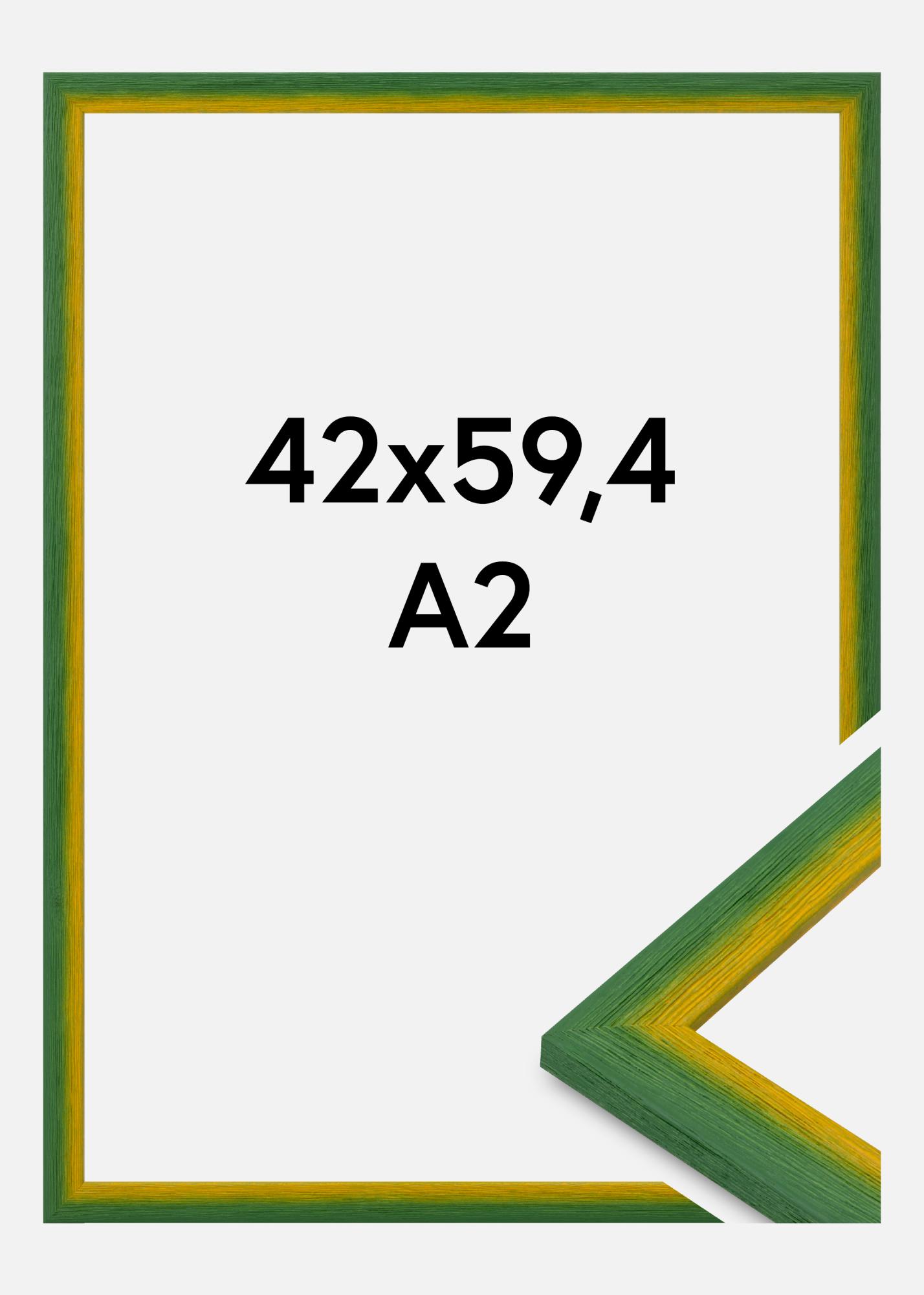 Este Marco para fotos en tamaño 42x59,4 cm es una combinación perfecta de diseño moderno y materiales naturales. Con una superficie lisa en tonos Verde y Amarillo dorado, resalta la textura natural de la madera de forma elegante. El perfil estrecho, con una moldura de Marco de 23 mm de ancho y 13 mm de profundidad, aporta una expresión sencilla y depurada que permite que tu imagen sea la protagonista.