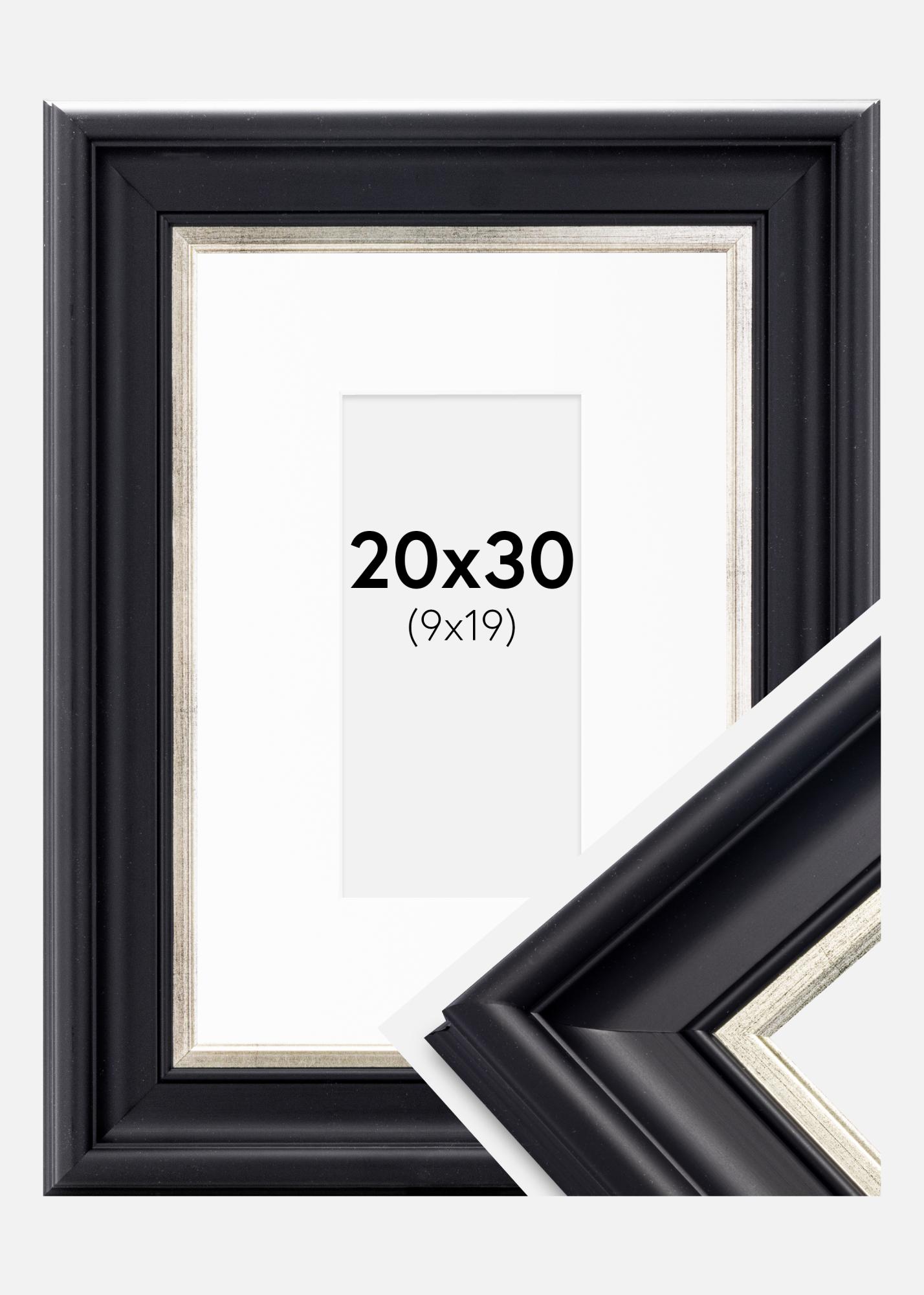 Marco Dalarna Negro-plateado 20x30 cm - Paspartú Blanco 10x20 cm
