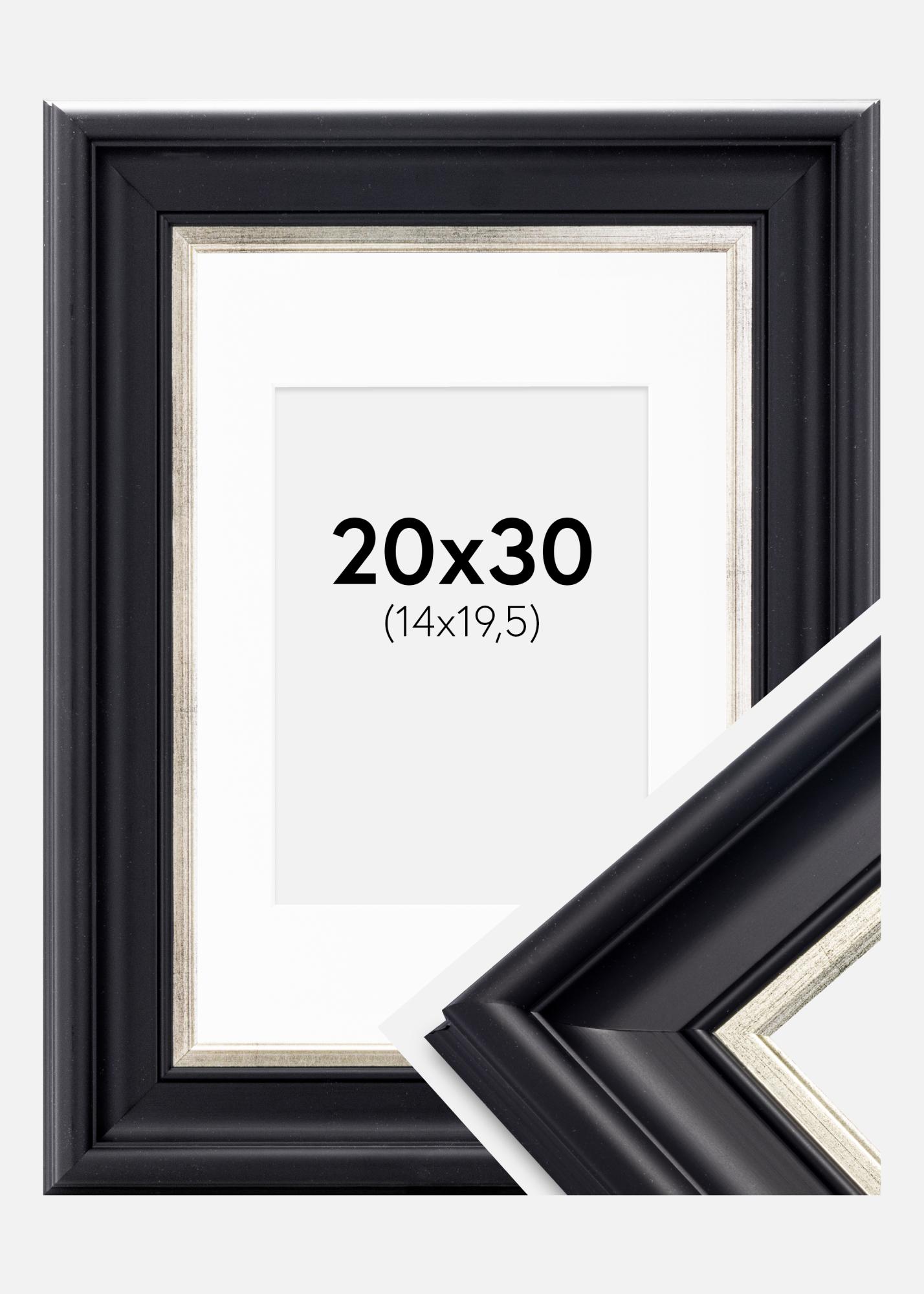 Marco Dalarna Negro-plateado 20x30 cm - Paspartú Blanco 15x21 cm (A5)