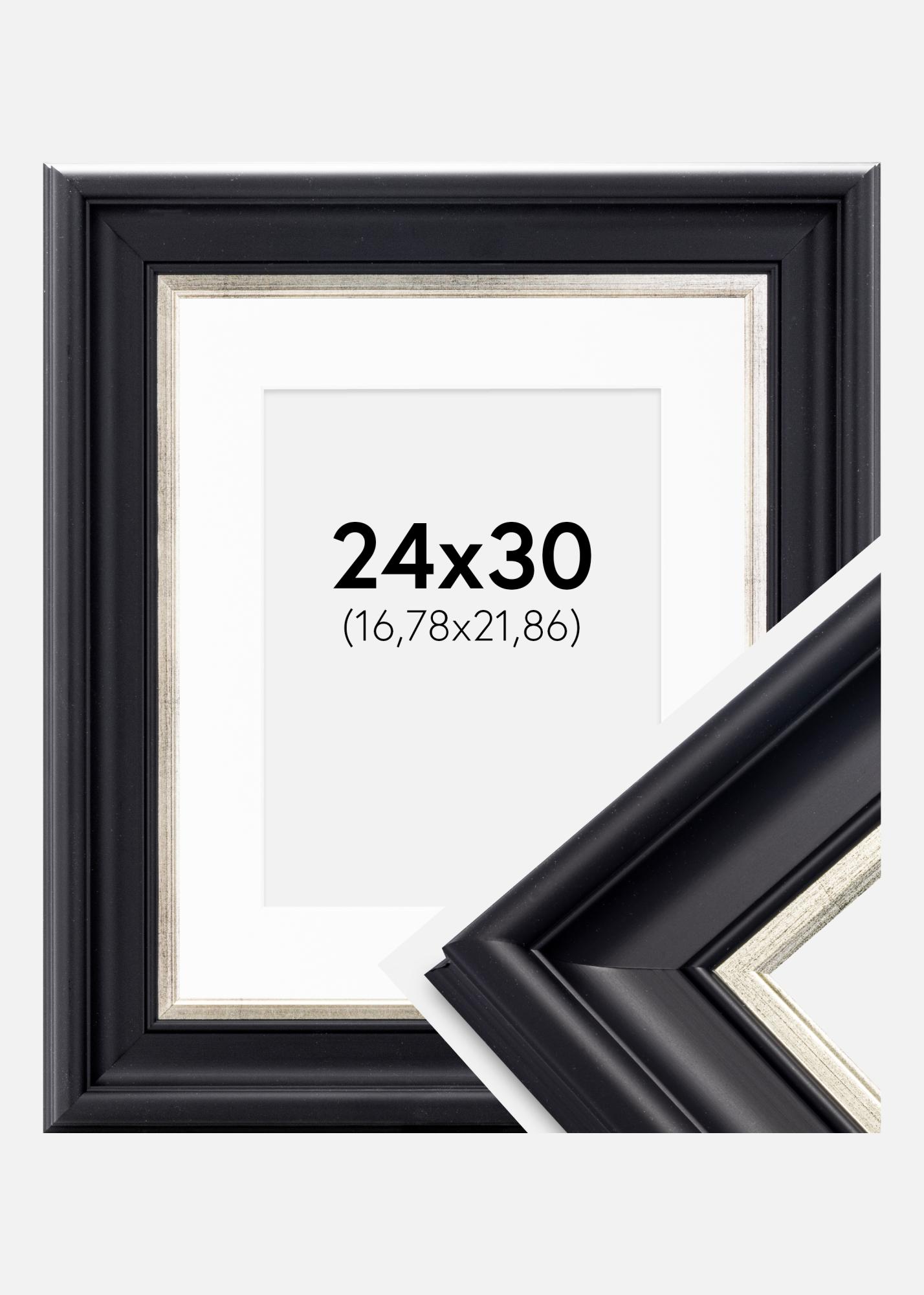 Marco Dalarna Negro-plateado 24x30 cm - Paspartú Blanco 7x9 inches