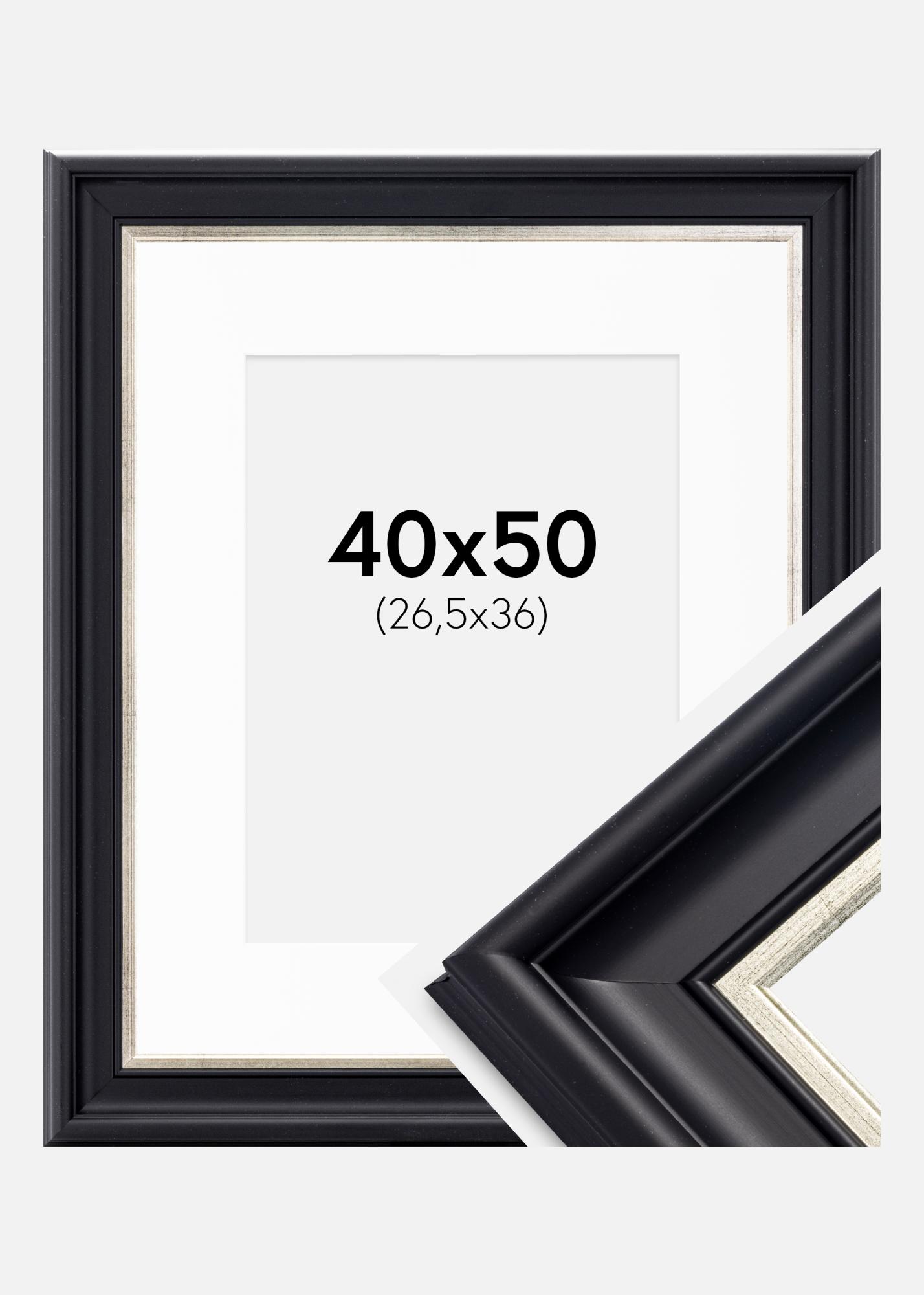 Marco Dalarna Negro-plateado 40x50 cm - Paspartú Blanco 27,5x37 cm