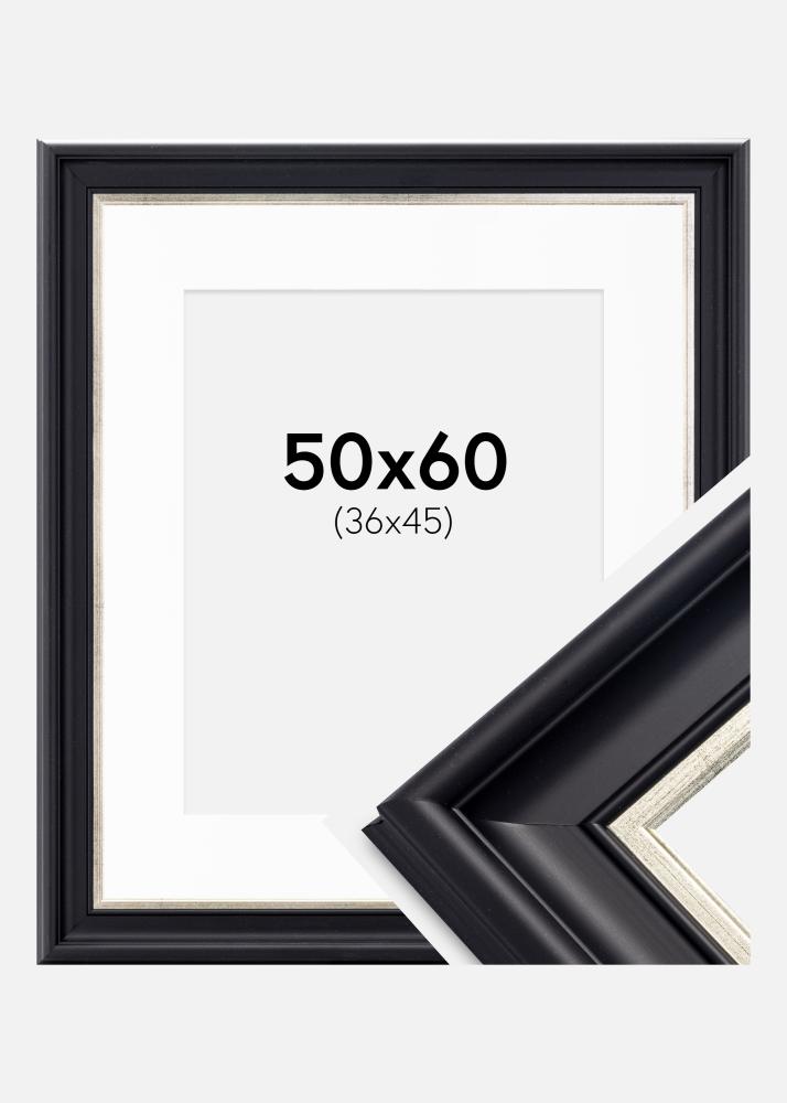 Marco Dalarna Negro-plateado 50x60 cm - Paspartú Blanco 37x46 cm