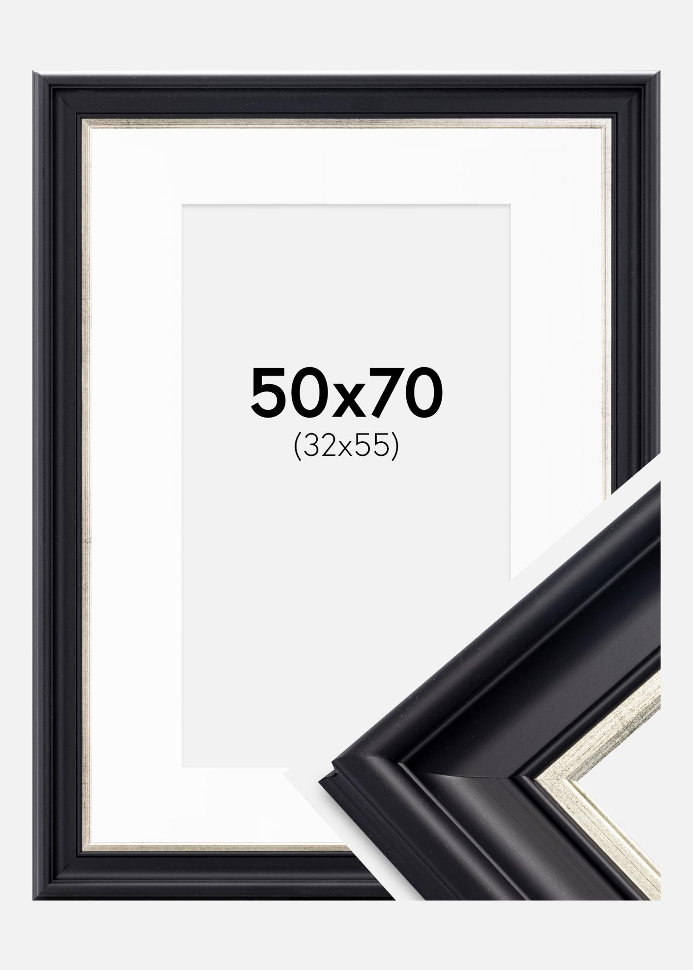 Marco Dalarna Negro-plateado 50x70 cm - Paspartú Blanco 33x56 cm