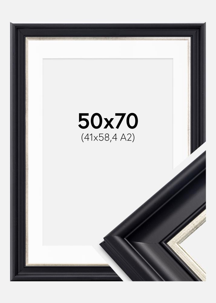 Marco Dalarna Negro-plateado 50x70 cm - Paspartú Blanco 42x59,4 cm (A2)