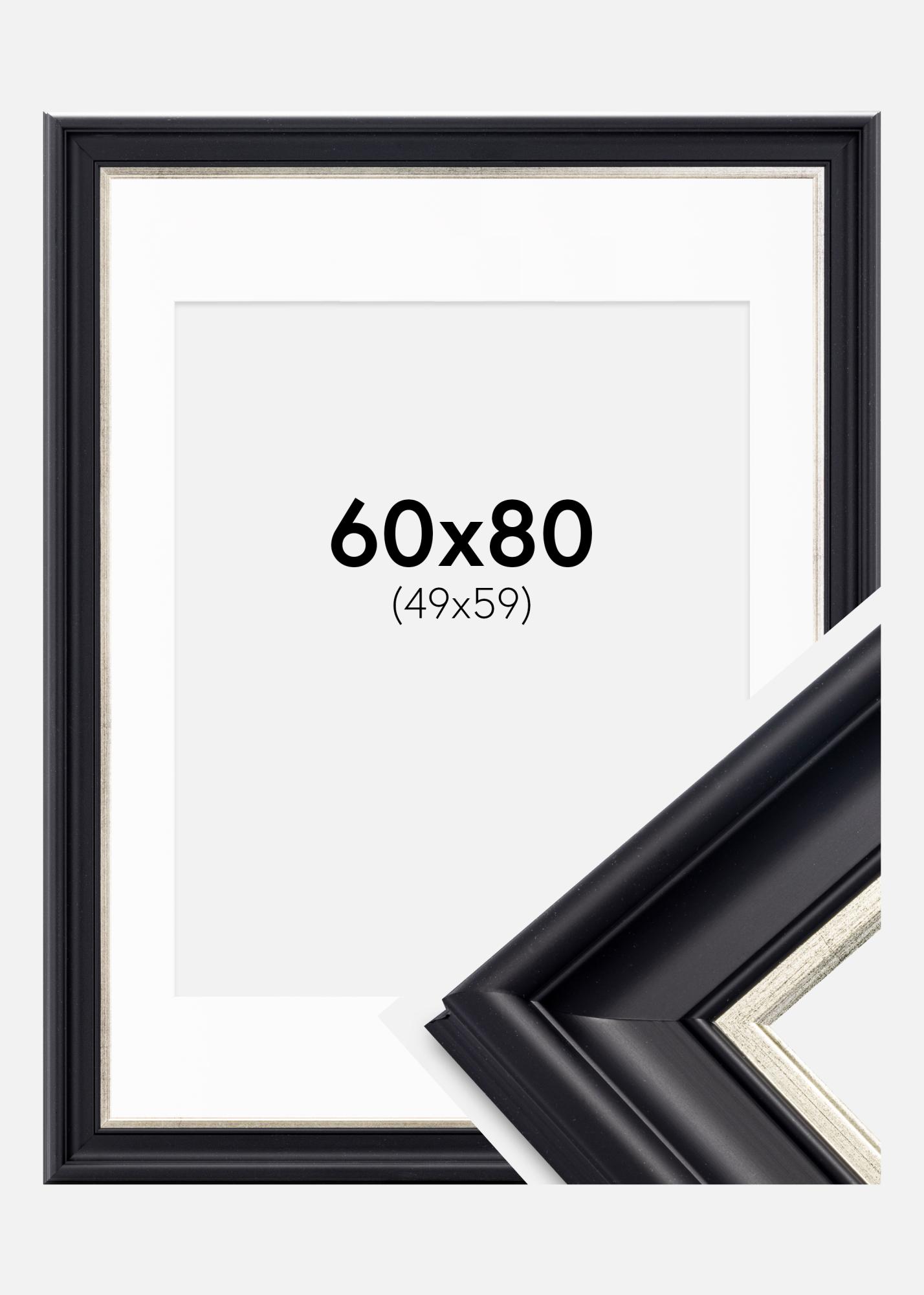 Marco Dalarna Negro-plateado 60x80 cm - Paspartú Blanco 50x60 cm