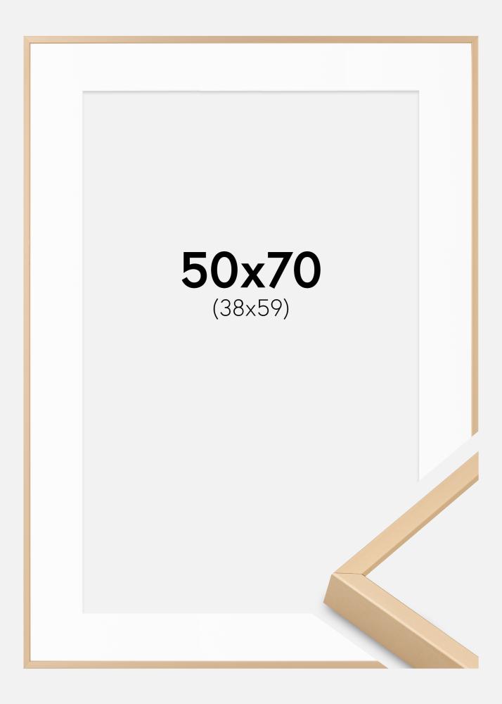 Marco Aluminio latón 50x70 cm - Paspartús Blanco 39x60 cm
