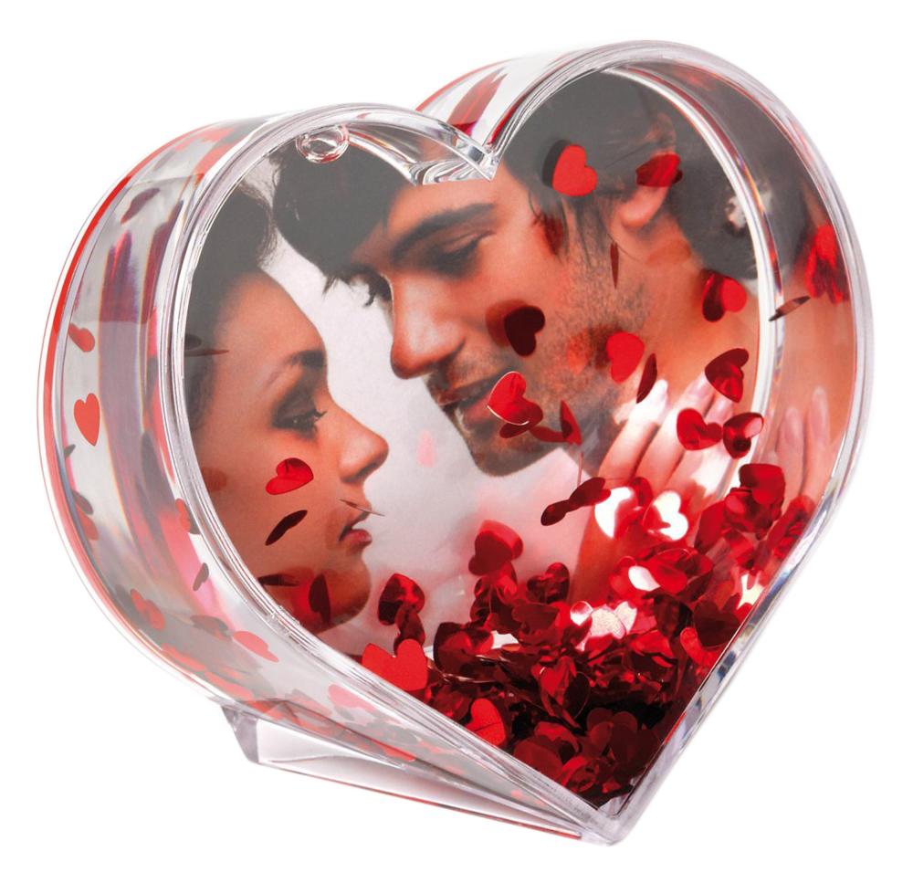 Este marco de fotos en forma de corazón le da a tus imágenes un marco muy romántico. El marco está hecho de plástico acrílico resistente y está lleno de corazones de metal rojos, creando una función similar a una "bola de nieve". El marco de fotos tiene espacio para 1 imagen de tamaño 9,1x6,5 cm.