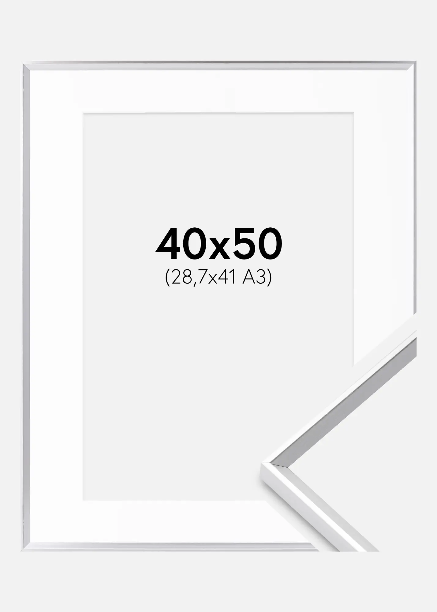 Marco Desire Plateado 40x50 cm - Paspartú Blanco 29,7x42 cm (A3)