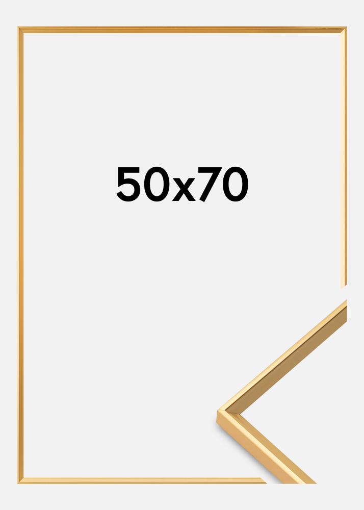 Da un toque de elegancia a tus paredes con nuestro marco de fotos con acabado brillante en color oro. Con un tamaño de 50x70 cm, este marco de cuadros es perfecto para resaltar tus obras de arte favoritas o fotos familiares. El delgado listón de marco de solo 10 mm le da a tu hogar una sensación moderna y elegante.