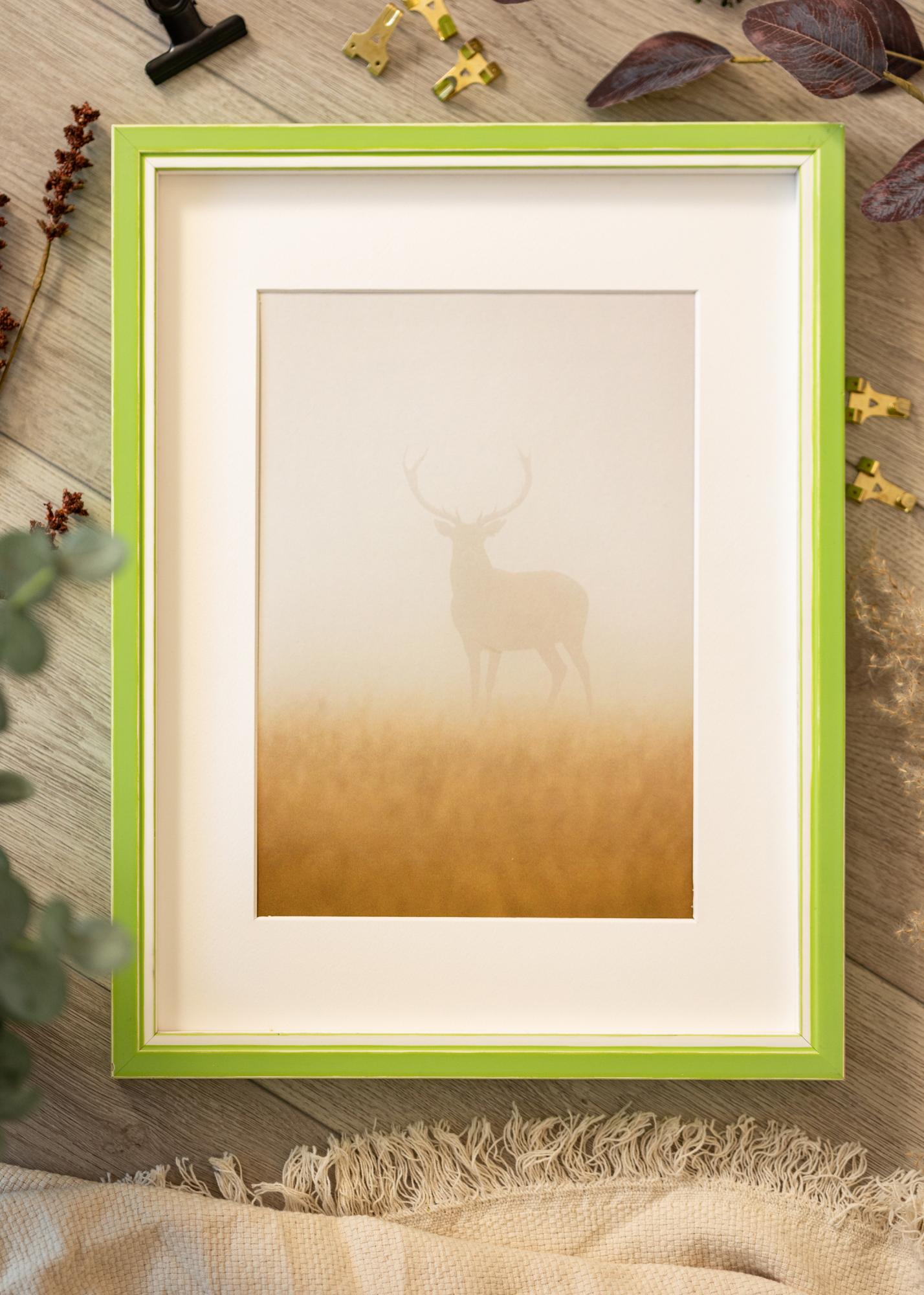 Este elegante marco en un hermoso tono verde es la elección perfecta para resaltar tus fotos favoritas. Con un ancho de 20 mm y una profundidad de 32 mm, ofrece un marco estable y elegante que se adapta a la mayoría de los hogares. El marco está equipado con un passepartout blanco que crea un contraste armonioso y resalta el motivo de manera sofisticada.