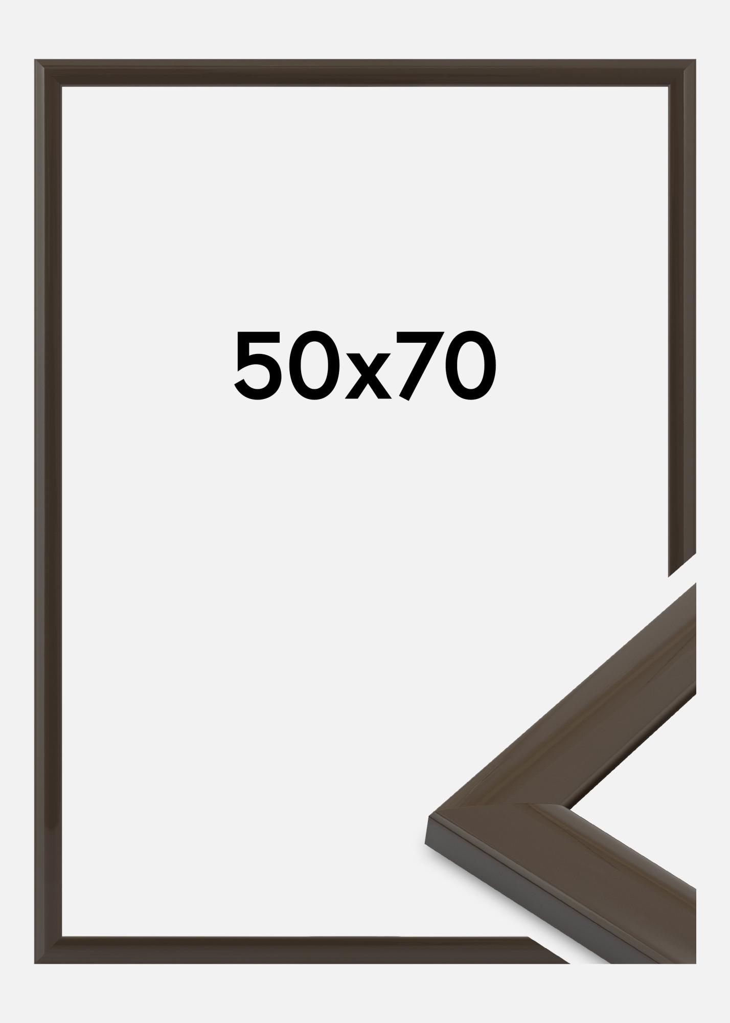 Con unas medidas de 50 x 70 cm, este Marco para cuadros es una excelente opción para dar un toque elegante a tus paredes. El acabado brillante y el tono Gris oscuro crean una atmósfera sofisticada que complementa tu decoración de manera refinada.