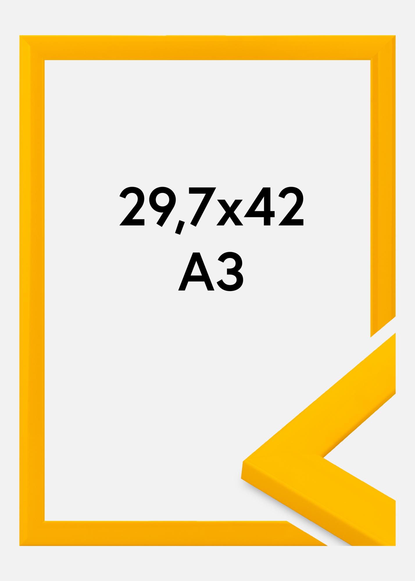 Este Marco para fotos en un tono Amarillo brillante es perfecto para dar a tus imágenes un toque vibrante y moderno. Con un tamaño de 29,7x42 cm, es ideal para motivos en formato A3, lo que lo hace perfecto tanto para fotografías como para pósteres. El acabado brillante y el perfil fino aportan al Marco un aspecto minimalista que permite que tu motivo sea el protagonista.