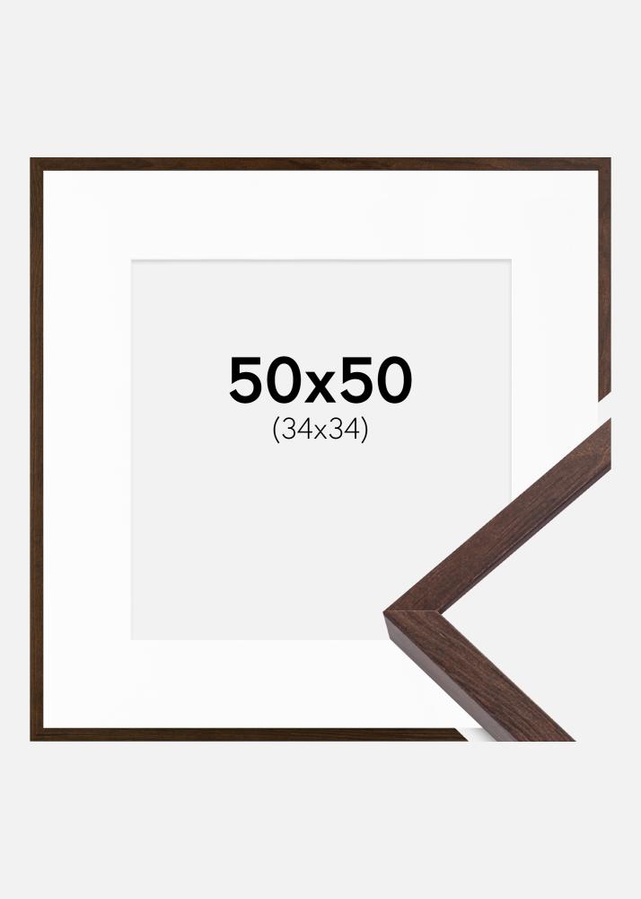 Marco E-Line Castaño 50x50 cm - Paspartú Blanco 35x35 cm