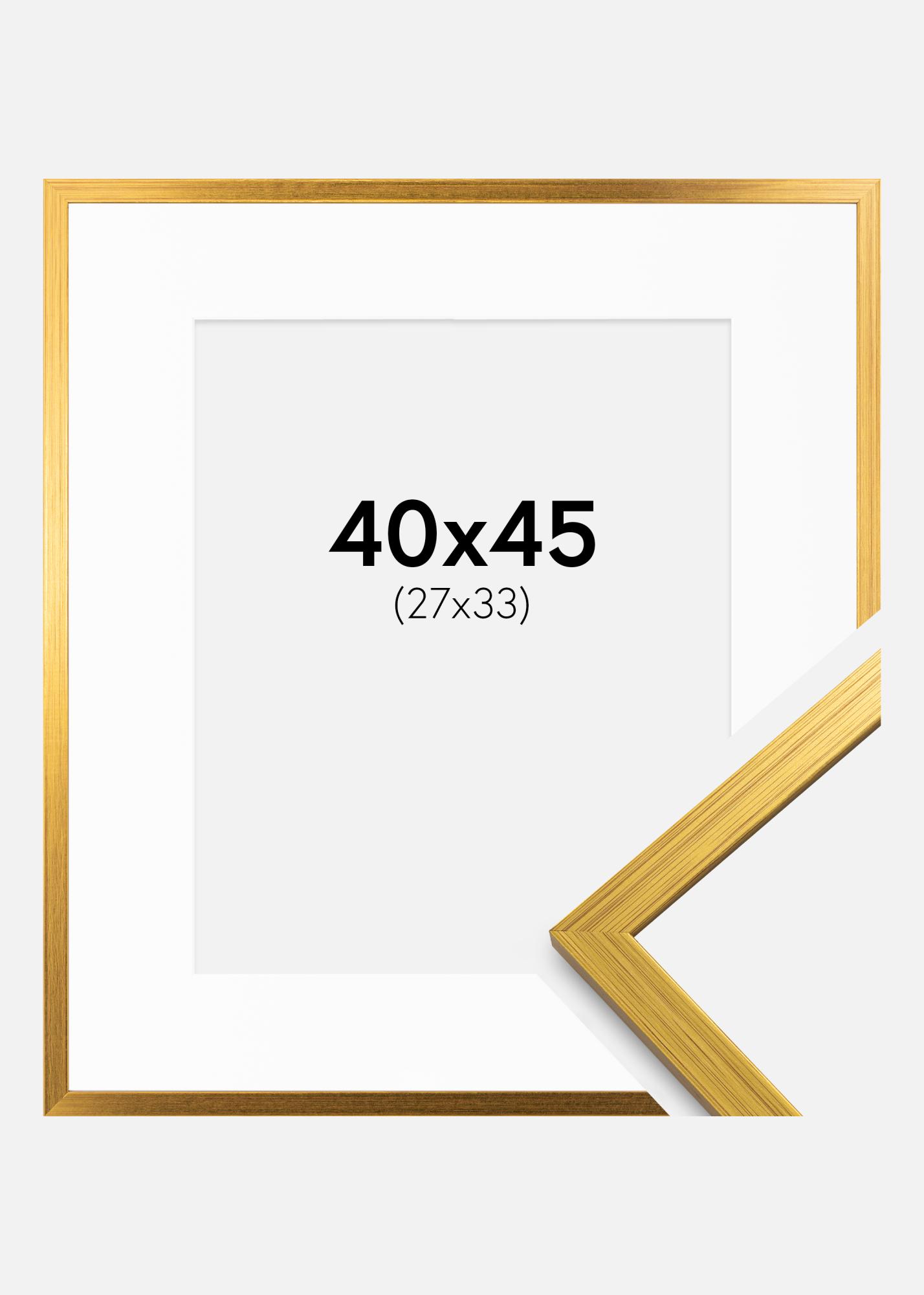 Transforma tus imágenes en obras de arte con nuestro elegante marco en oro, completo con un passepartout blanco. Este marco está diseñado para adaptarse a imágenes de tamaño 28x34 cm y ofrece un enmarcado sofisticado que resalta el motivo de una manera elegante. Con un ancho de 13 mm y una profundidad de 11,5 mm, ofrece un perfil estrecho y moderno que encaja perfectamente en cualquier hogar.