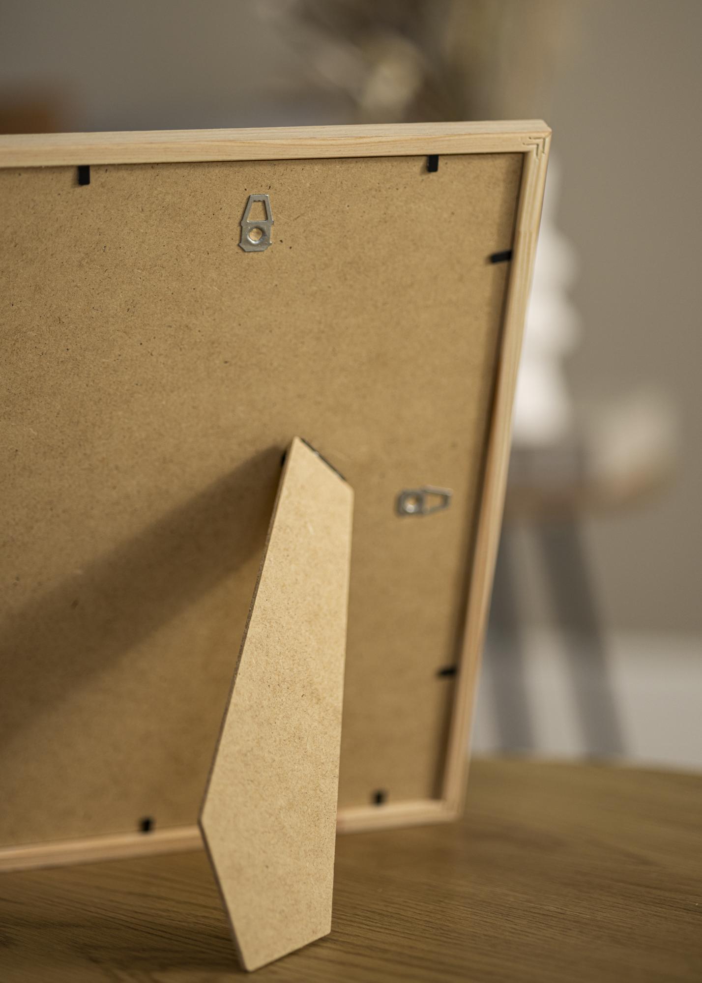 A veces nos preguntan por qué el marco está hecho de chapado de roble en lugar de roble macizo si se supone que es un marco de calidad. La razón de esto es que es difícil obtener una superficie controlada cuando se trata de roble macizo, ya que a menudo hay variaciones de color en diferentes partes de la madera, lo cual puede ser adecuado en ciertos contextos. Pero en un marco, solo haría que pareciera que partes del marco están descoloridas.