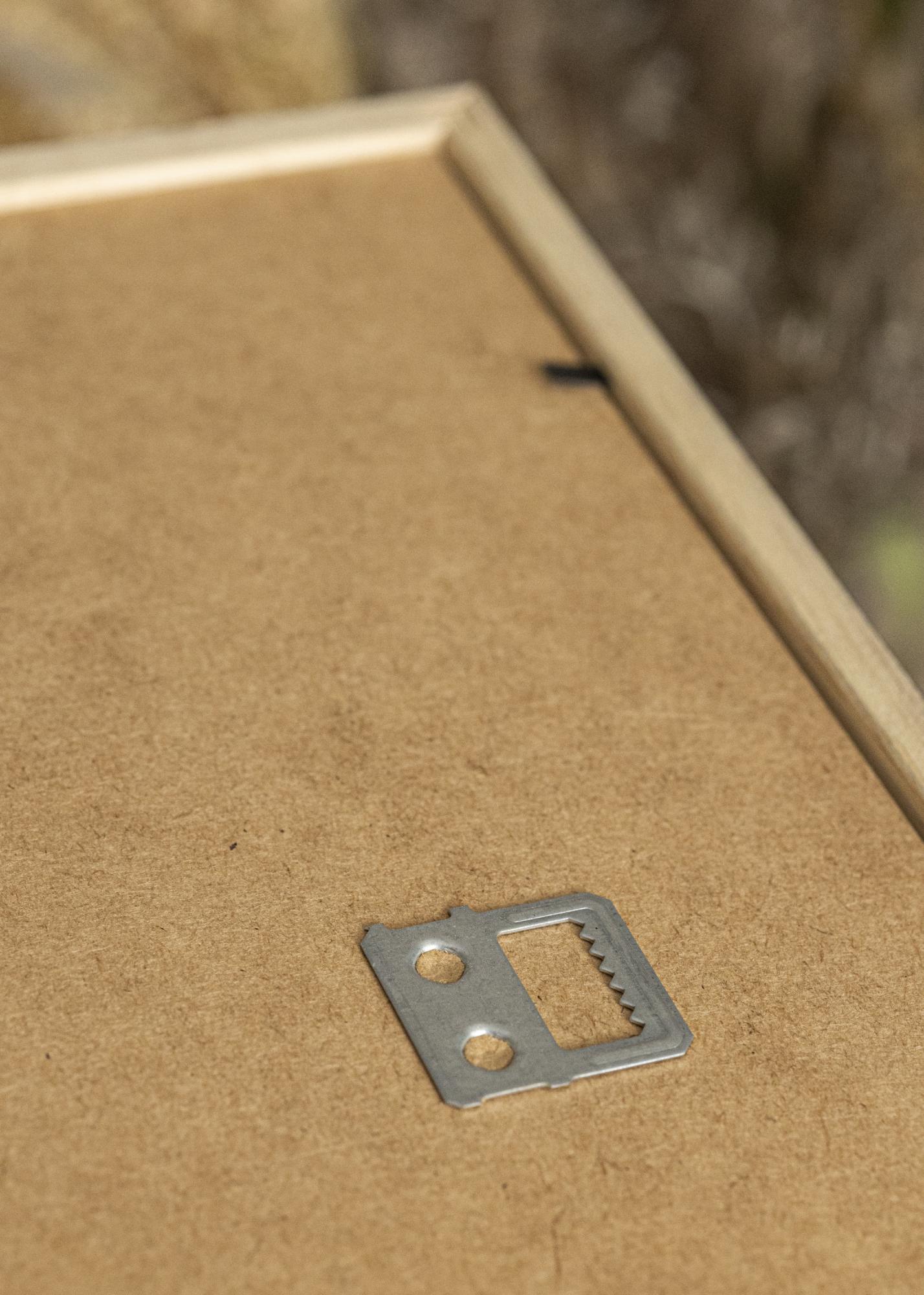 Este marco para cuadros está hecho en madera de ayo y tiene una lista de 13 mm de ancho con una superficie brillante. El cristal es de acrílico, que es una variante de vidrio ligera e irrompible con una nitidez cristalina. En la parte trasera hay colgadores de pared para montarlo tanto en posición vertical como horizontal.