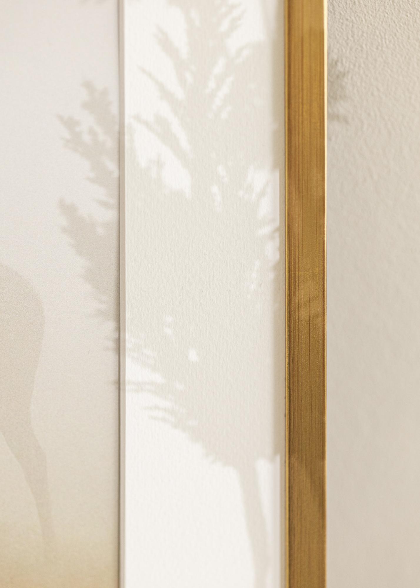 Con este marco dorado en blanco, tus motivos tendrán un marco que es tanto moderno como elegante. Se adapta tanto a solas en la pared como junto con otros marcos en una galería de pared. Si además combinas el marco dorado con variantes de marcos en otros colores, obtendrás un resultado aún más emocionante.