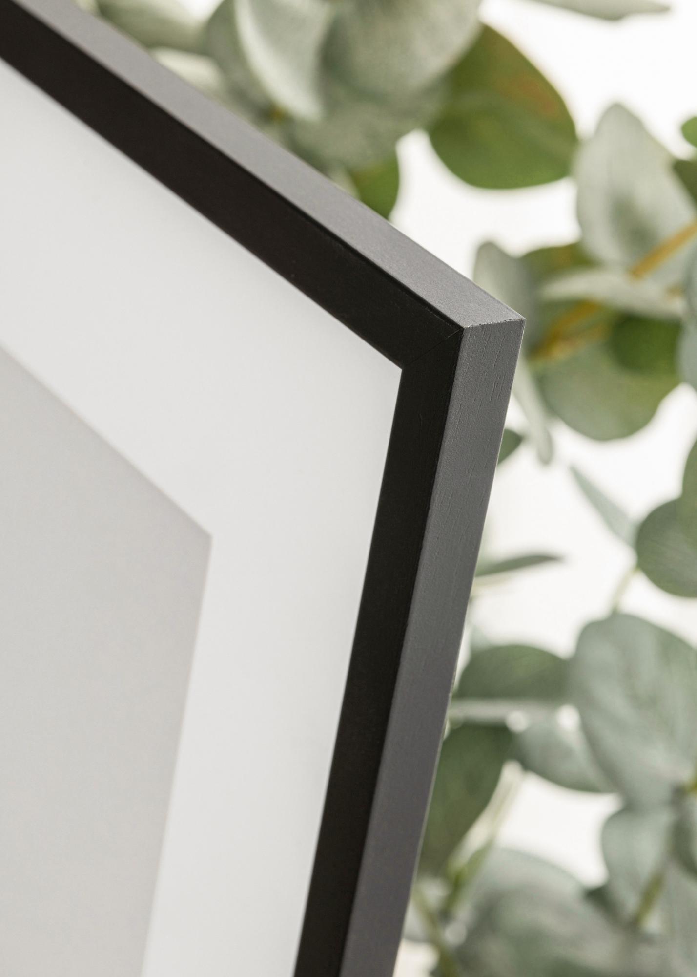 Edsbyn negro es un marco de calidad fabricado en Suecia hecho de madera de haya genuina. El marco está pintado de negro, lo que le da un aspecto moderno y atemporal, algo que también se refuerza por su perfil cuadrado. El listón del marco tiene un ancho de 13 mm y una profundidad de 11,5 mm, lo que hace que el marco sea fino pero al mismo tiempo se sienta sólido y estable. Hay soportes de pared para colgar tanto en posición vertical como horizontal. El marco tiene una profundidad falsa (profundidad interna) de 8 mm y mucho espacio en caso de que desees complementar tu motivo con un elegante paspartú. La parte trasera está hecha de MDF y se mantiene en su lugar con pequeños clavos de metal que se doblan fácilmente cuando deseas montar tu motivo.