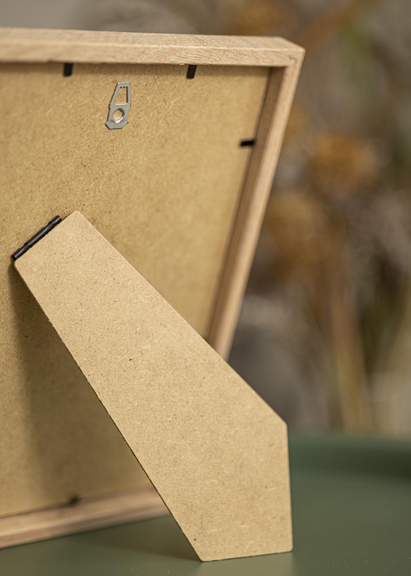 ¡Combina encimeras, muebles y otros componentes de decoración hechos de roble con este marco natural! El marco está hecho de roble macizo al 100% y tiene una superficie aceitada con una hermosa veta destacada. Puedes elegir si quieres colocarlo vertical u horizontalmente en la pared: todos los tamaños tienen soportes de pared en ambos lados.