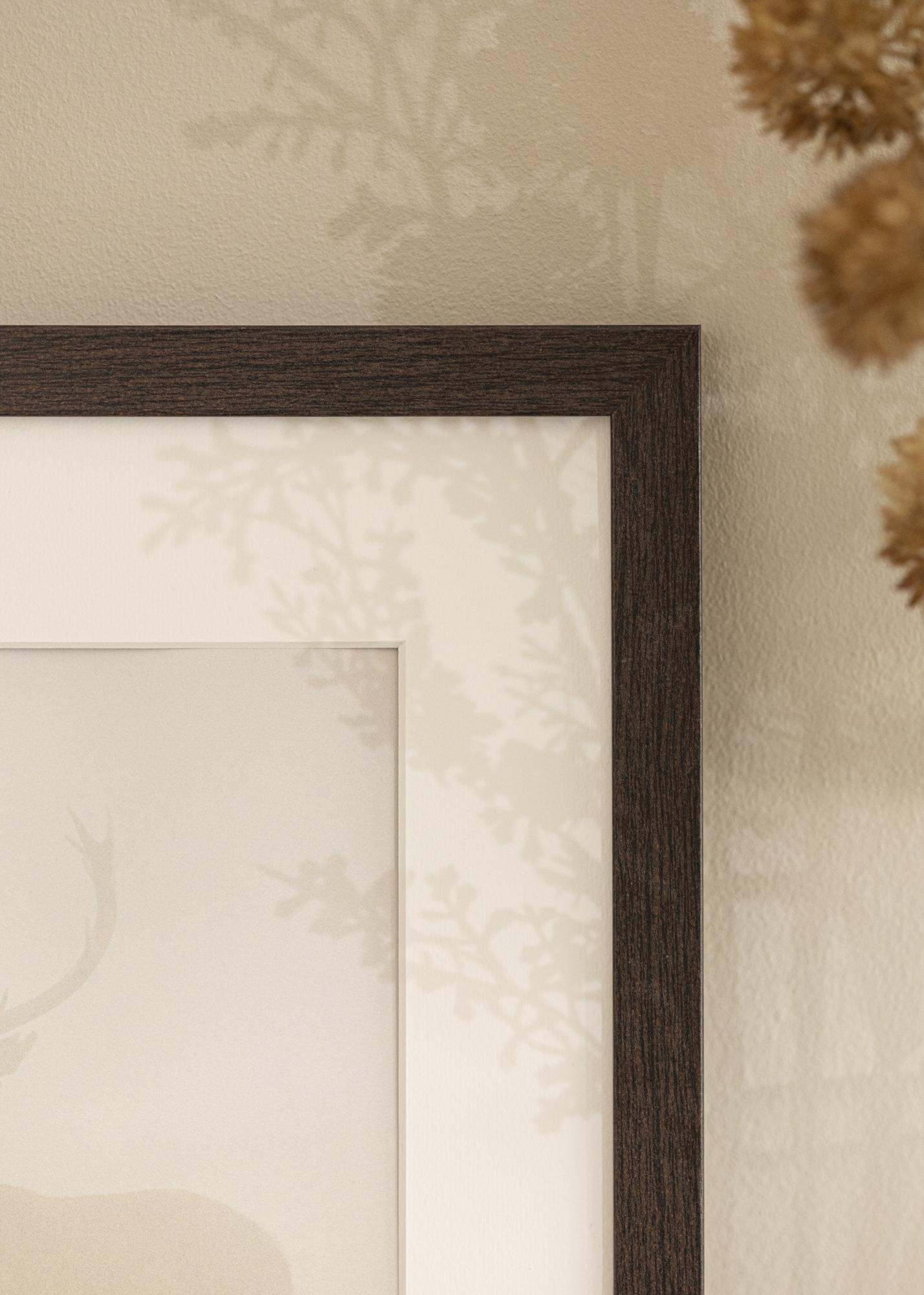 Este elegante marco marrón con passepartout es perfecto para resaltar tus fotos favoritas en tamaño 40x60 cm. Con un ancho de 20 mm y una profundidad de 14 mm, proporciona una sensación elegante y moderna a tu hogar.