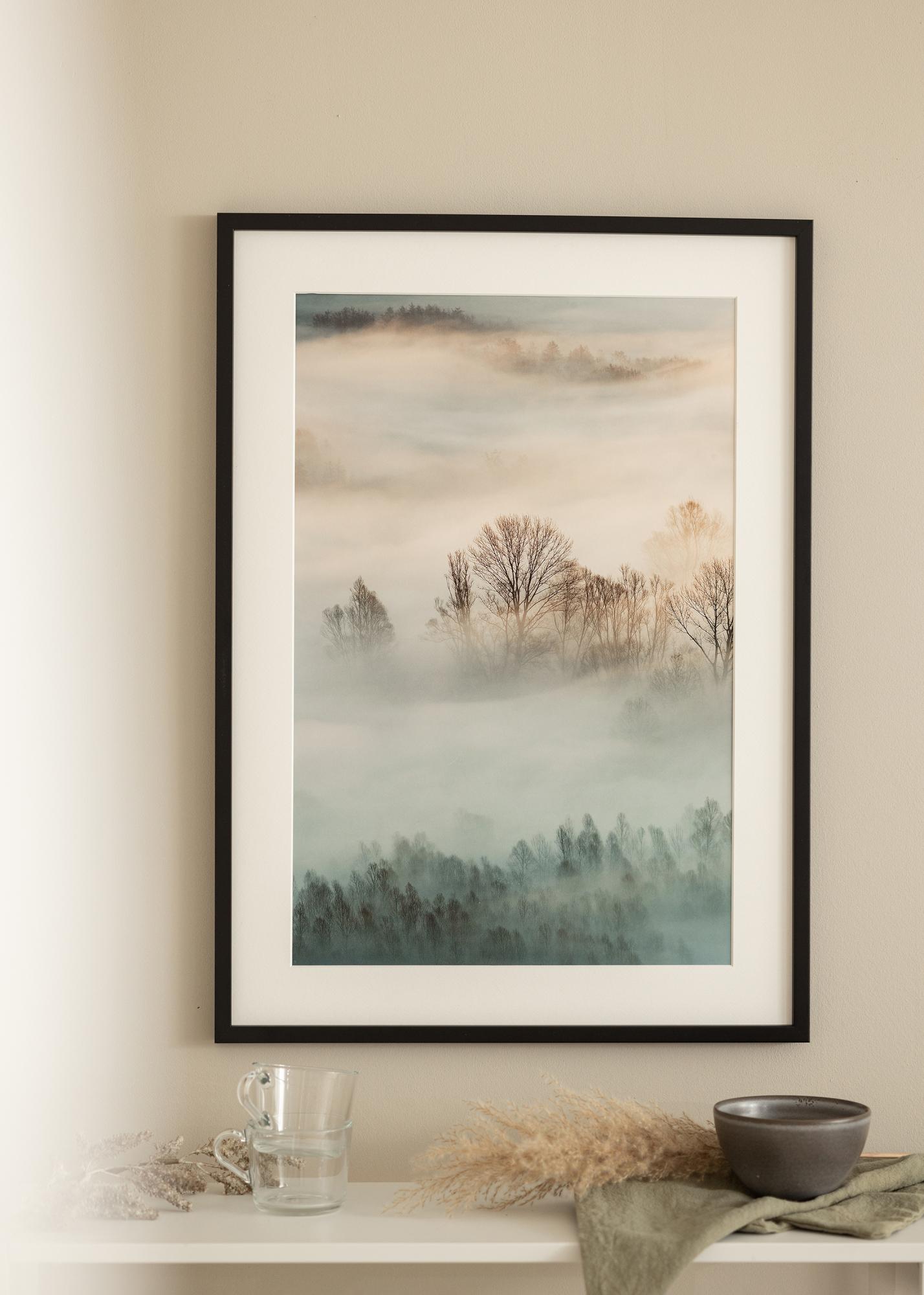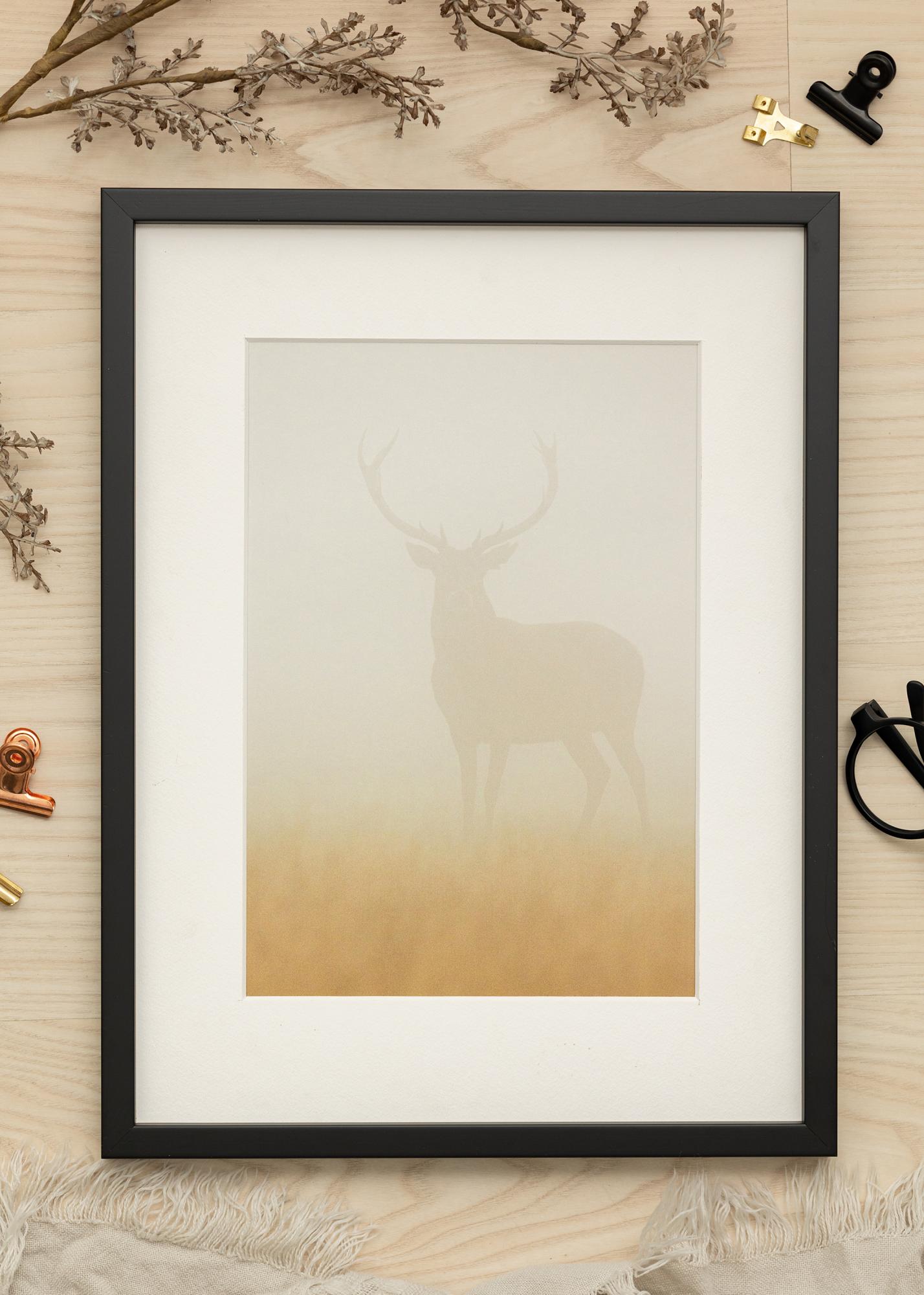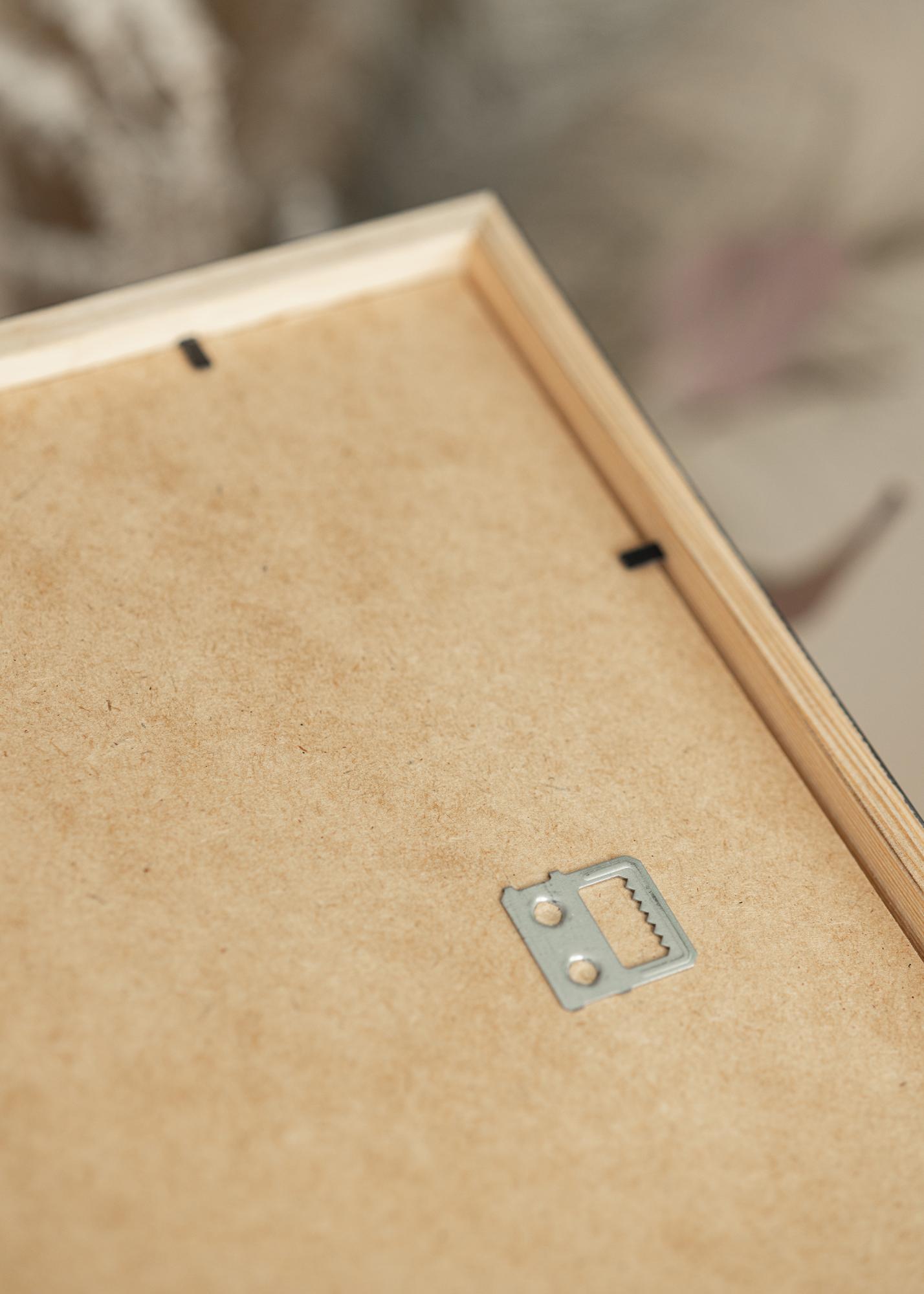 El marco se puede montar en la pared tanto en posición vertical como horizontal, y queda igual de bien solo en la pared como en combinación con otros marcos. En la parte trasera hay una dosis trasera de material HDF, que se mantiene en su lugar con pequeños clavos. Para montar tus motivos, levanta los clavos y retira la dosis trasera.