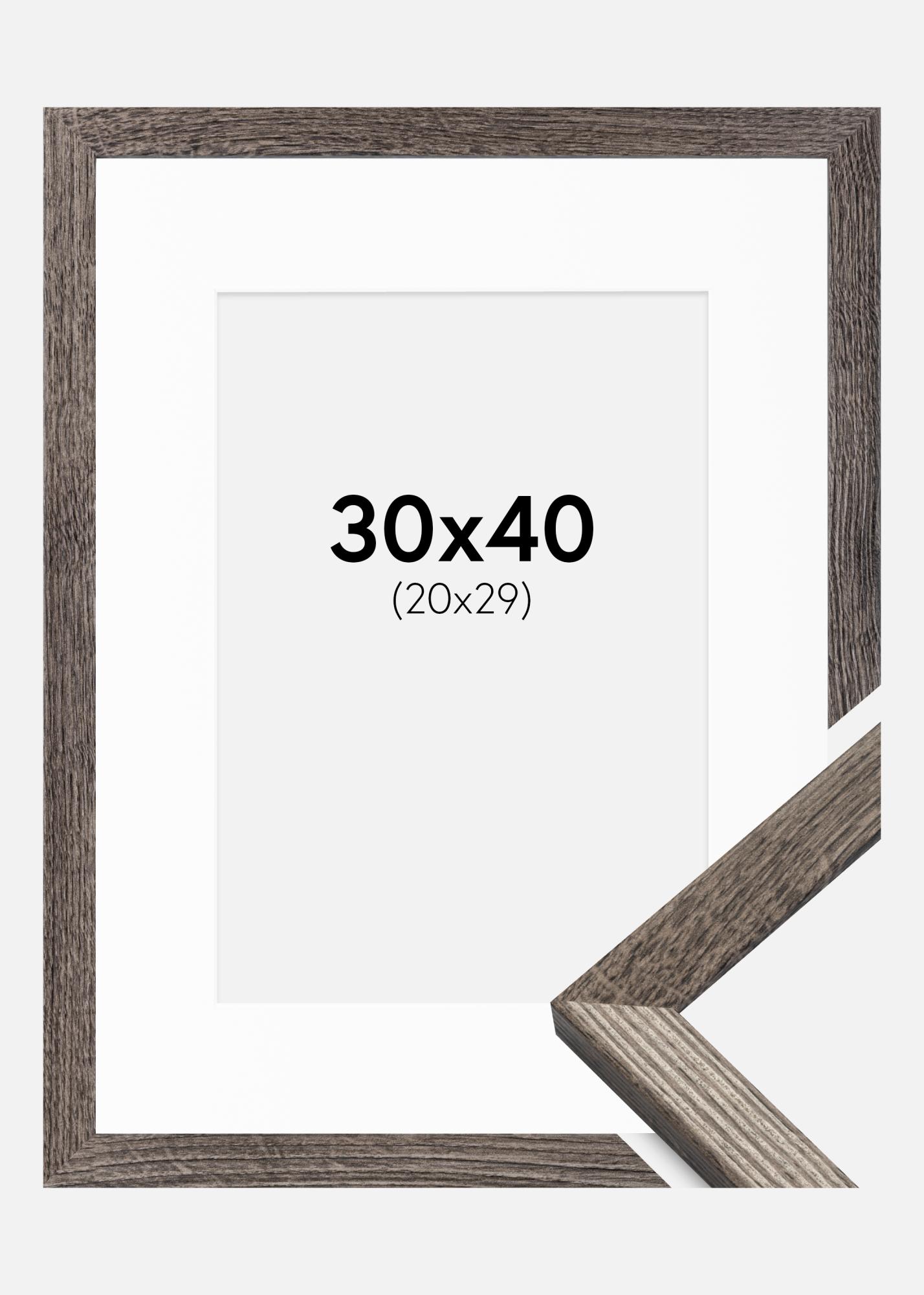 Este pack incluye un marco y un paspartú en blanco. En la imagen del producto figuran las dimensiones del marco (en negrita) y las dimensiones internas del paspartú (entre paréntesis). Ten en cuenta que las dimensiones internas del paspartú siempre deben ser 1 cm menor que el tamaño de imagen deseado.