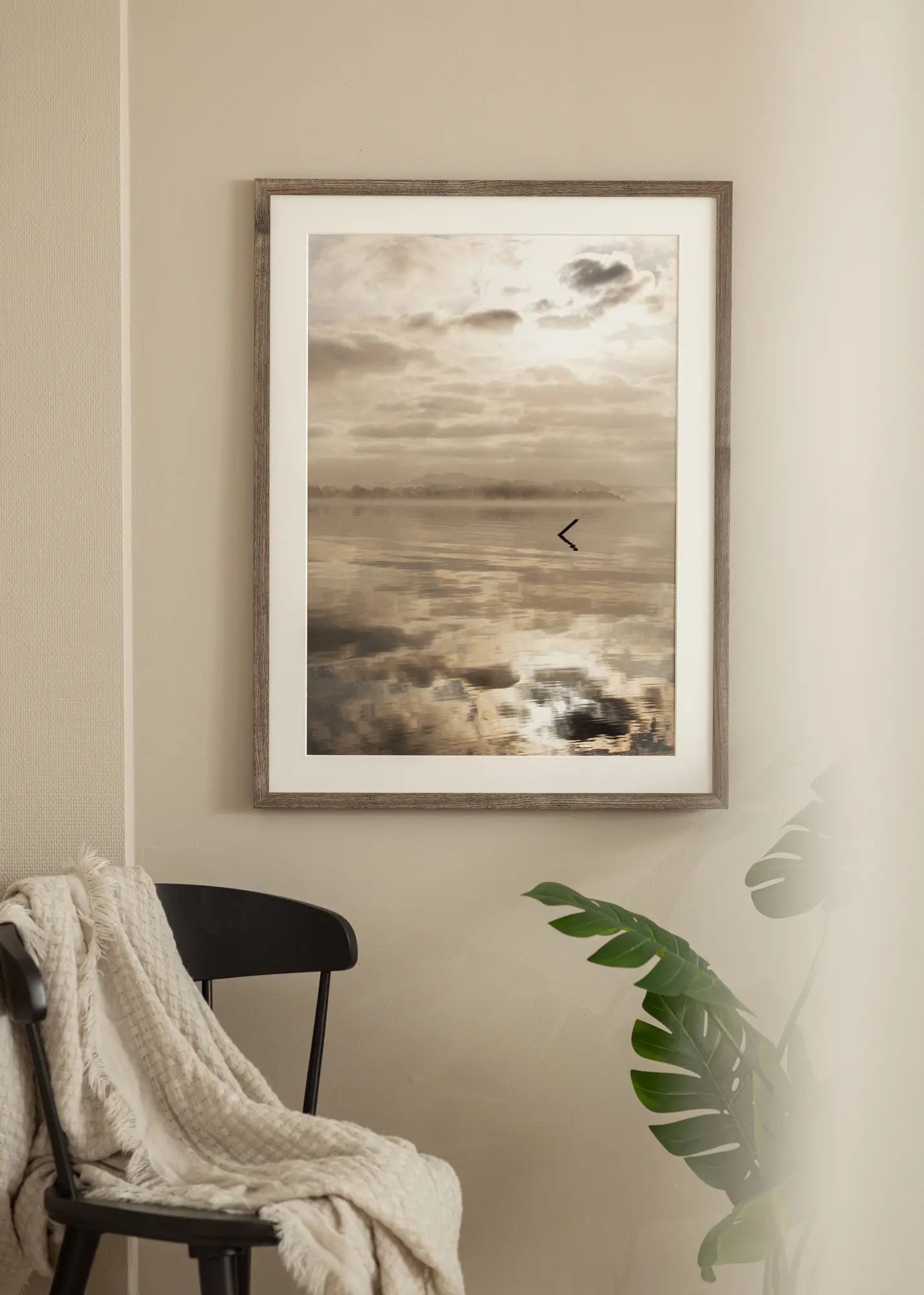 Este es un marco de fotos con vidrio acrílico, que es una variante de vidrio irrompible y más ligero que el vidrio común. En la parte pósterrior encontrarás prácticos soportes de pared que te permiten colgar el marco tanto horizontal como verticalmente. El montaje de la imagen se realiza con la ayuda de clavos flexibles en la parte pósterrior del marco.