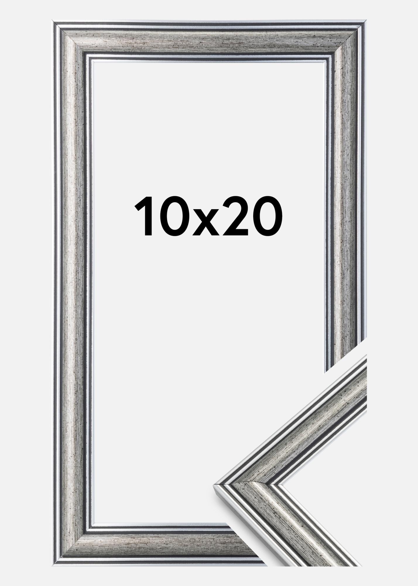 Frigg es un marco plateado con líneas negras y toques de negro. Es perfecto cuando buscas un marco plateado tradicional y amplio que se adapte a muchos tipos de imágenes y entornos.