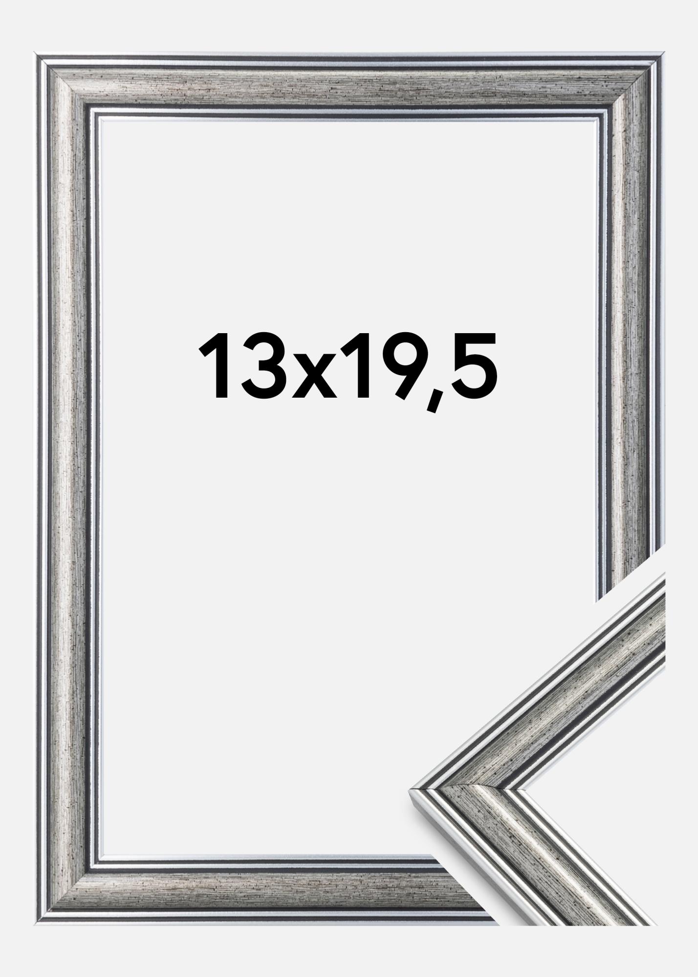 Frigg es un marco plateado con líneas negras y toques de negro. Es perfecto cuando buscas un marco plateado tradicional y amplio que se adapte a muchos tipos de imágenes y entornos.