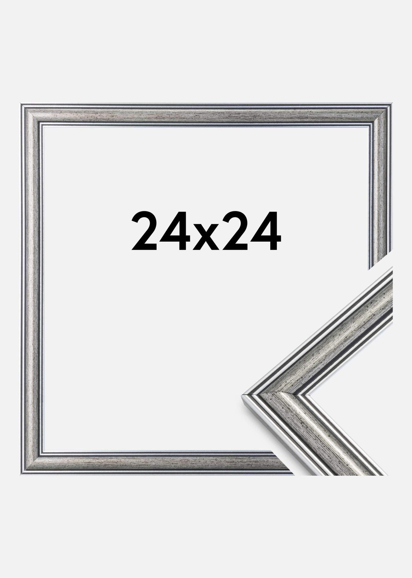 Frigg es un marco plateado con líneas negras y toques de negro. Es perfecto cuando buscas un marco plateado tradicional y amplio que se adapte a muchos tipos de imágenes y entornos.