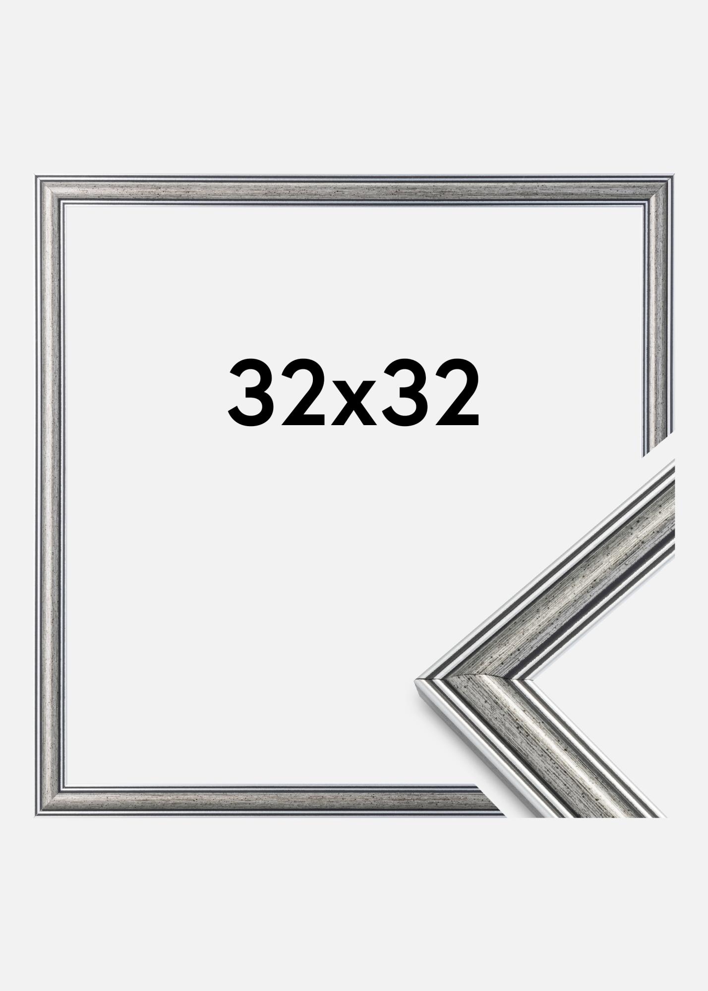 Frigg es un marco plateado con líneas negras y toques de negro. Es perfecto cuando buscas un marco plateado tradicional y amplio que se adapte a muchos tipos de imágenes y entornos.