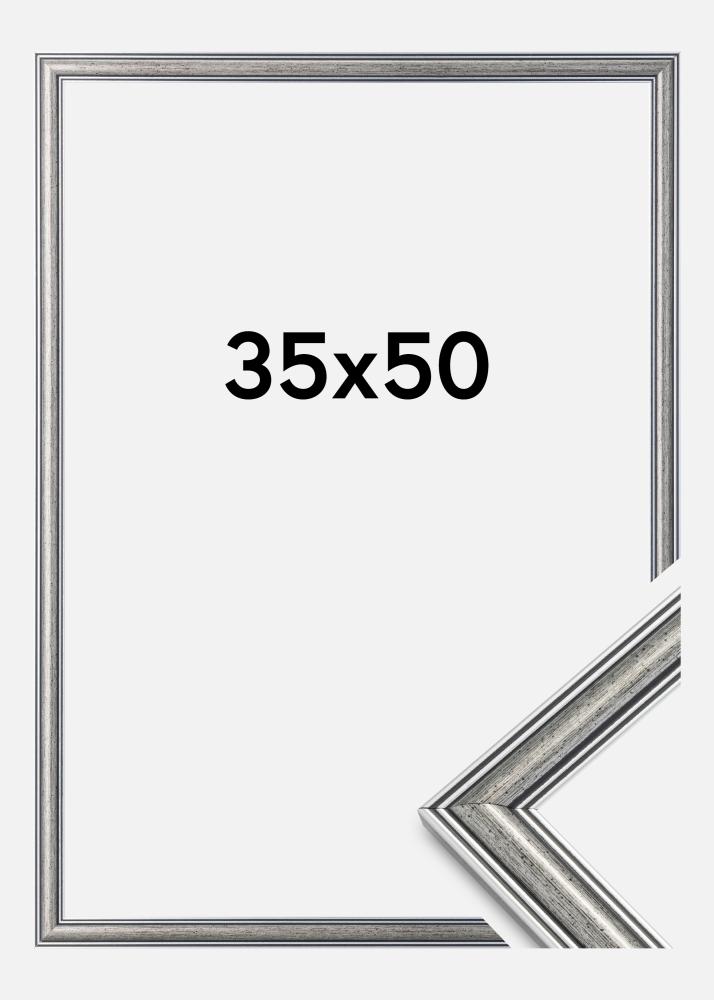 Frigg es un marco plateado con líneas negras y toques de negro. Es perfecto cuando buscas un marco plateado tradicional y amplio que se adapte a muchos tipos de imágenes y entornos.