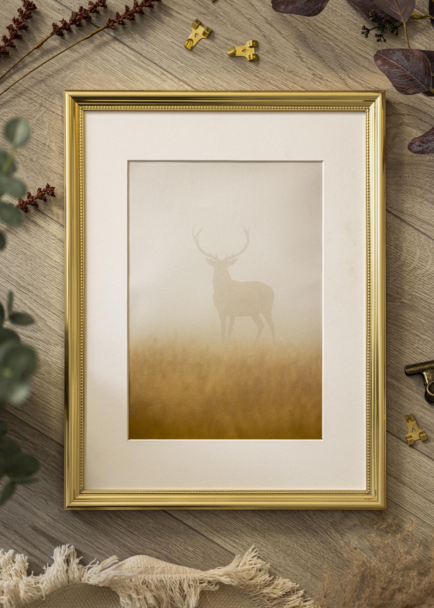 Transforma tus recuerdos en obras de arte con este elegante marco en dorado. Con un ancho de 20 mm y una profundidad de 17 mm, proporciona un enmarcado sofisticado a tus imágenes favoritas. La superficie brillante refleja la luz hermosamente y crea una sensación de lujo en cualquier habitación.