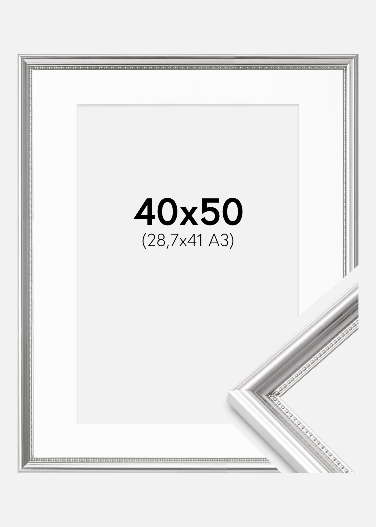 Marco Gala Plateado 40x50 cm - Paspartú Blanco 29,7x42 cm (A3)