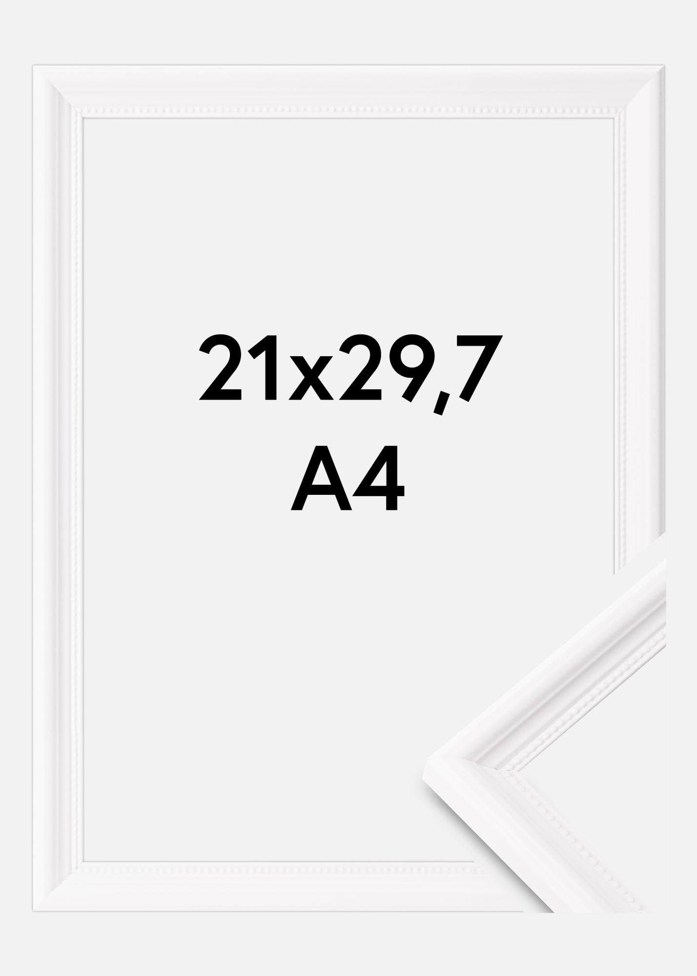 Crear una decoración mural atemporal con este elegante marco de fotos en tamaño 21x29,7 cm (A4). El color blanco y el perfilado marco de estilo retro dan una impresión sofisticada que complementa todo tipo de obras de arte o fotografías. Con un listón de marco de 20 mm de ancho y 17 mm de profundidad, este marco para cuadros proporciona un borde distintivo y atractivo a tu imagen favorita.