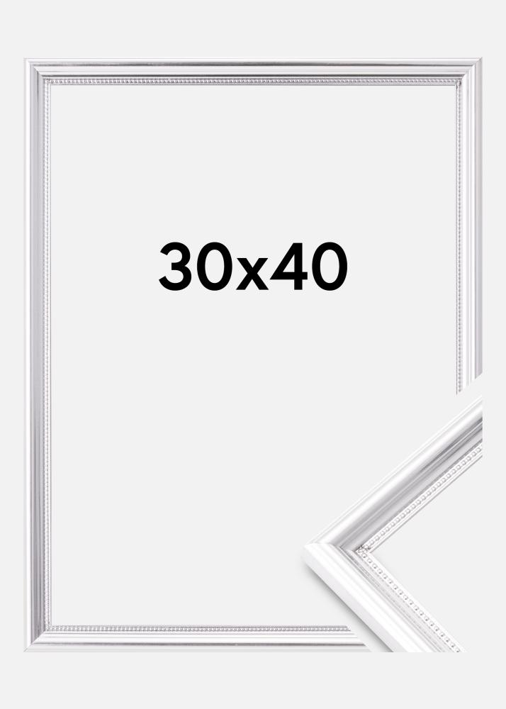 Da un toque de elegancia a tus paredes con este marco de fotos plateado en tamaño 30x40 cm. Con su perfil de marco ornamentado de 20 mm y un grosor de 17 mm, este marco combina un diseño clásico con detalles modernos. La superficie brillante resalta el estilo retro del marco y lo convierte en un elemento llamativo en cualquier habitación.