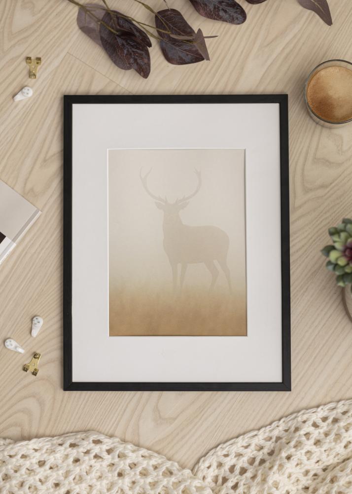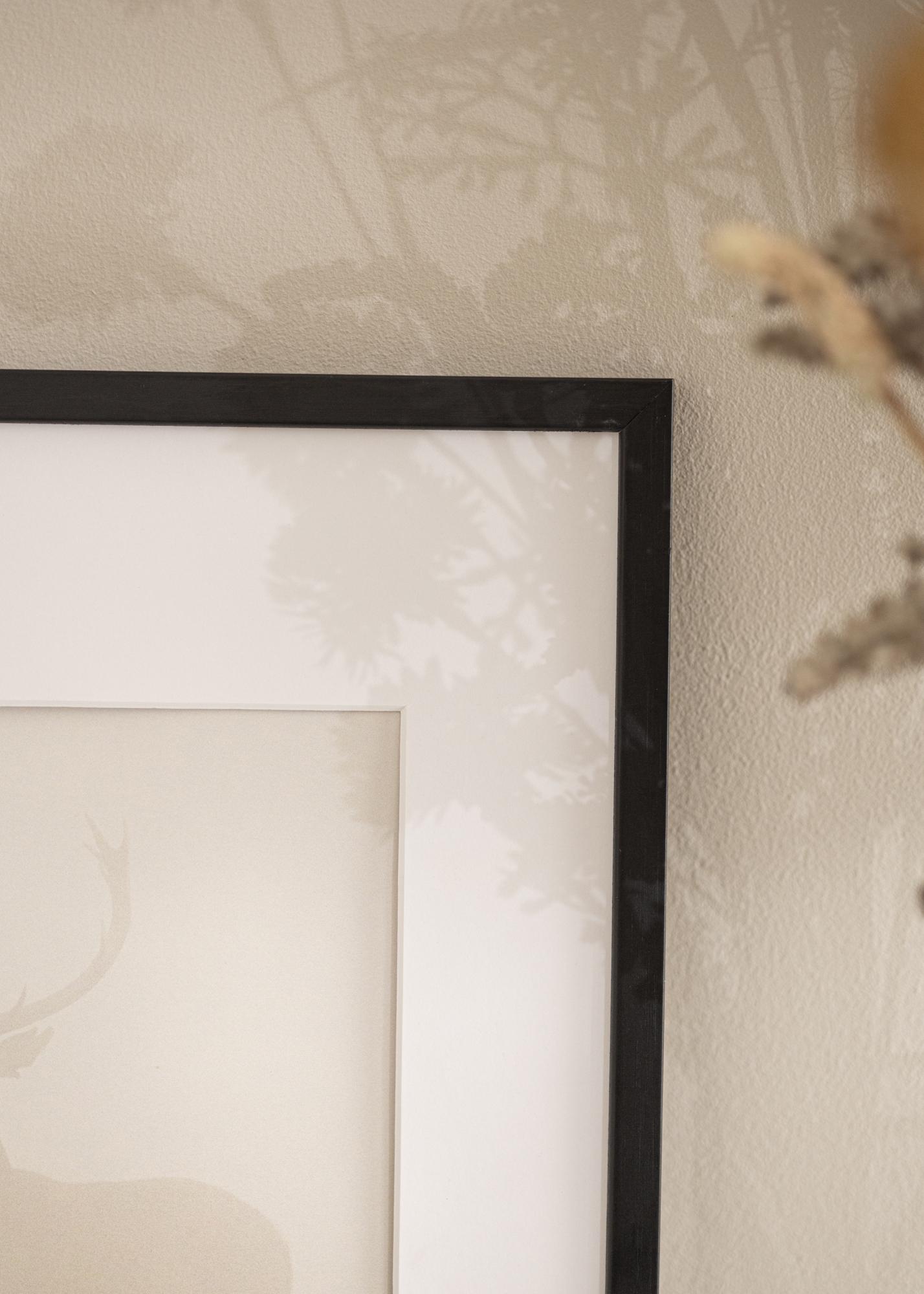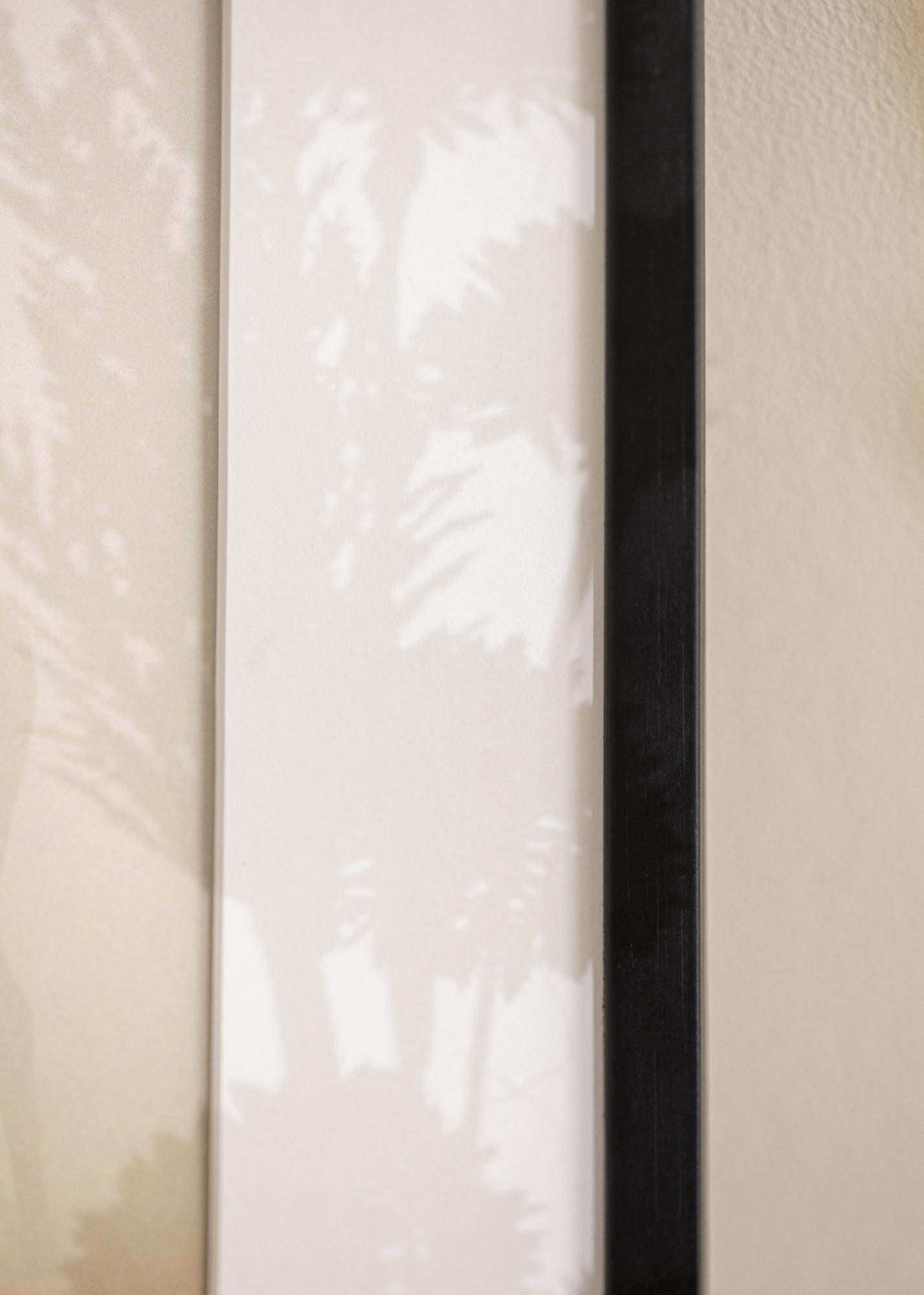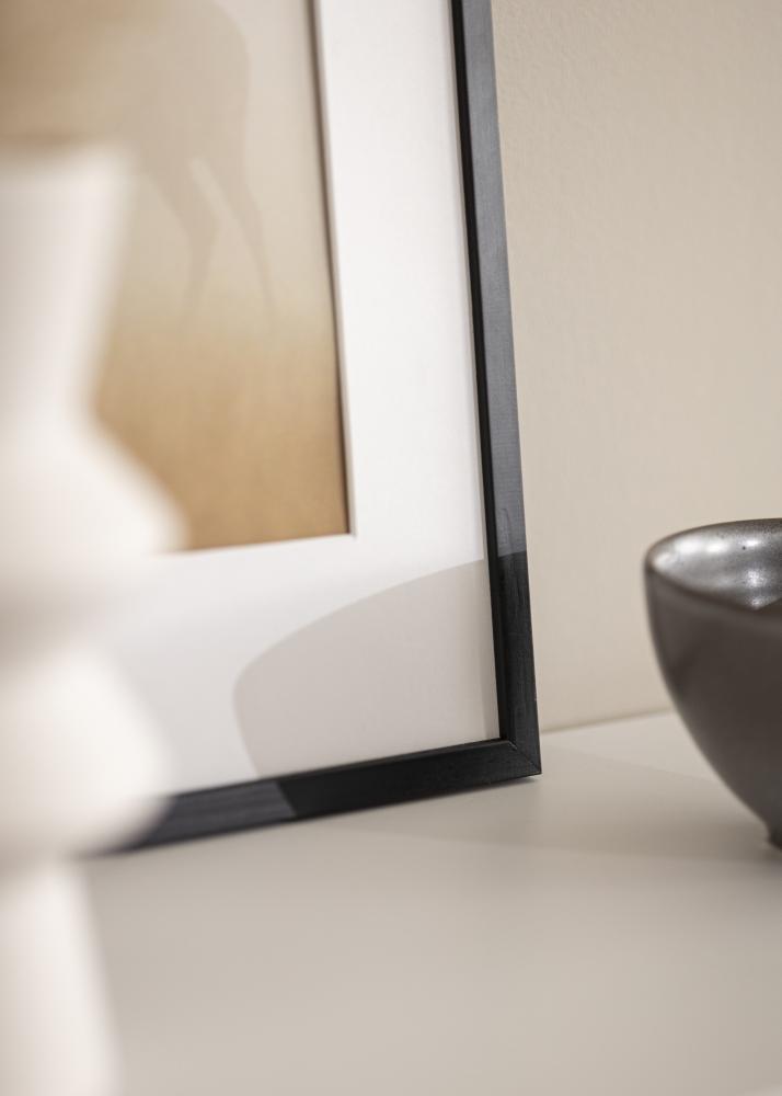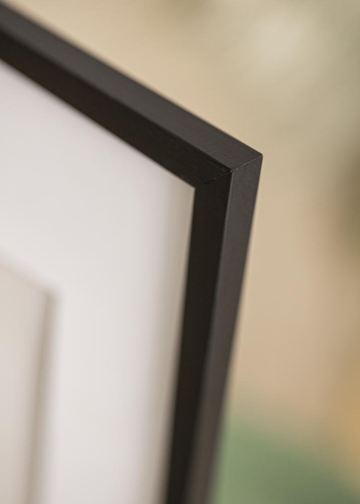 Marco negro y elegante fabricado en madera con un listón de marco que solo mide 13 mm de ancho y 13 mm de profundidad. Estas dimensiones hacen que el marco se sienta estable pero a la vez fino y bonito. Un marco negro es un clásico que enmarca y realza tu motivo de manera elegante. El marco tiene vidrio auténtico. En la parte trasera del marco hay soportes de pared para colgar tanto en posición vertical como horizontal.