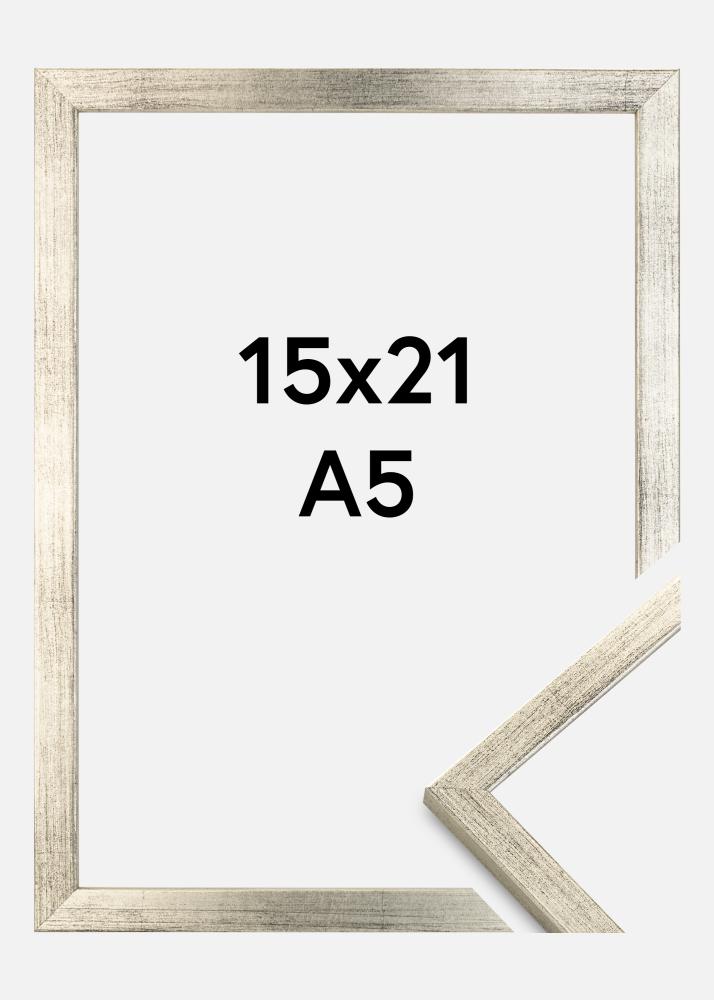 Elegante marco de madera con un perfil recto que tiene una encantadora sensación vintage y una superficie plateada desgastada con toques de negro. Con su suave perfil plateado, Galant Plateado es un marco que se adapta a casi todo tipo de imágenes.