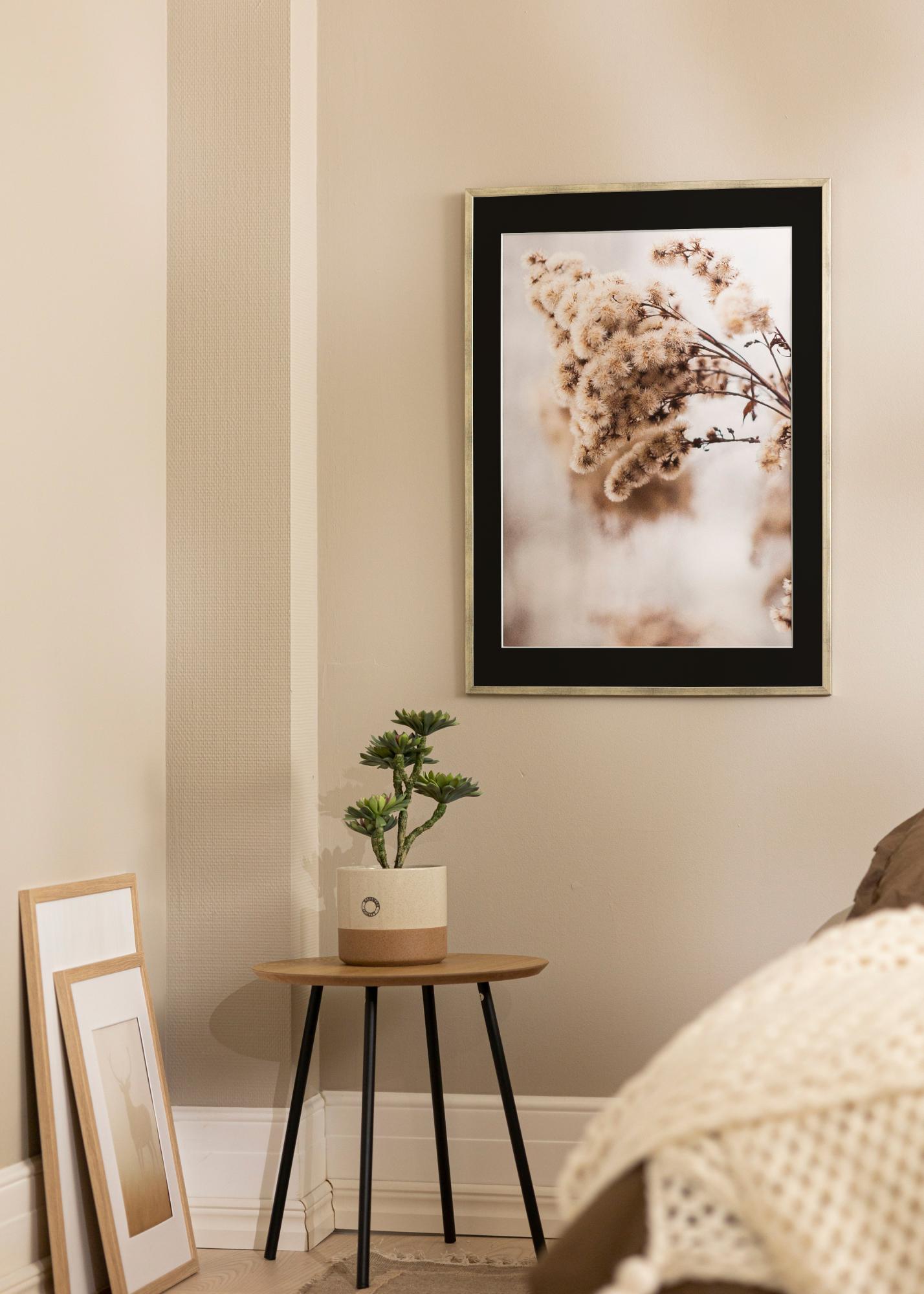 Este pack incluye un marco y un paspartú en negro. En la imagen del producto figuran las dimensiones del marco (en negrita) y las dimensiones internas del paspartú (entre paréntesis). Ten en cuenta que las dimensiones internas del paspartú siempre deben ser 1 cm menor que el tamaño de imagen deseado.