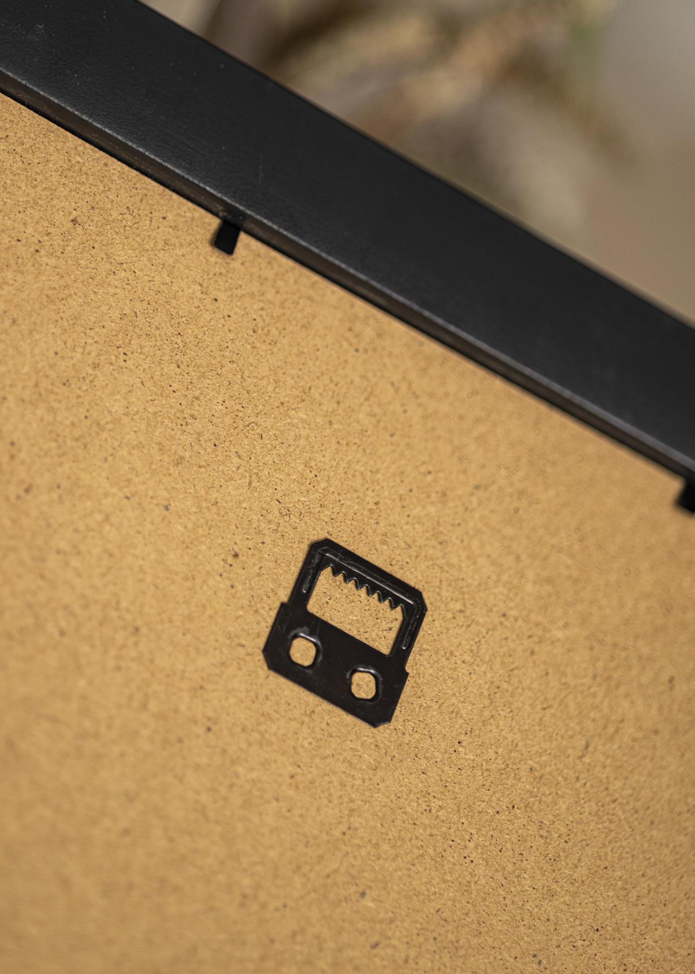 Equipado con colgadores de metal, el marco se puede colgar tanto horizontal como verticalmente. El acrílico es cristalino y a prueba de astillas, con una película protectora en ambos lados que debe retirarse antes de su uso.