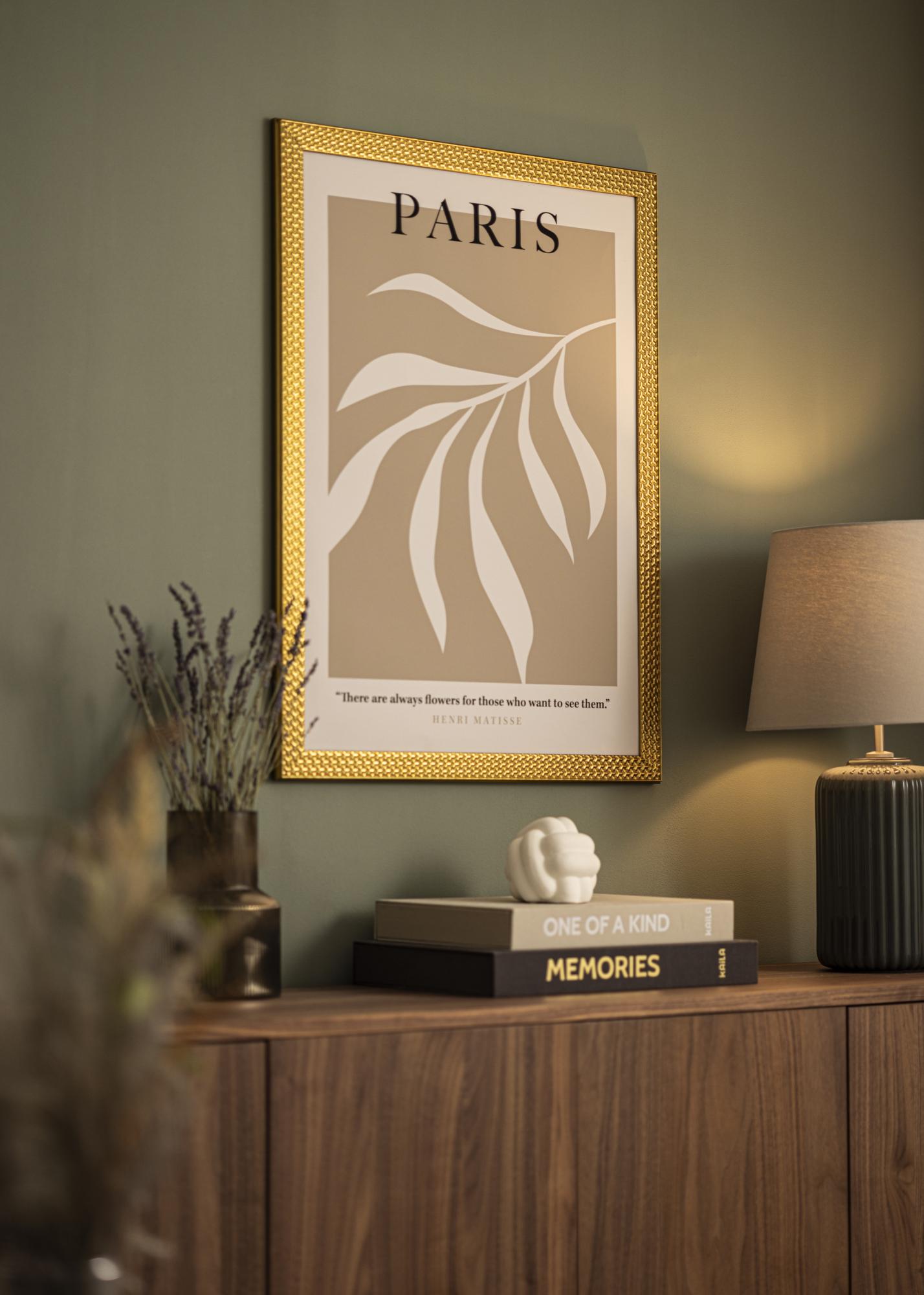 El marco tiene una superficie brillante y está equipado con un passepartout blanco que resalta tu imagen. Las dimensiones exteriores son 45,8x55,8 cm.
