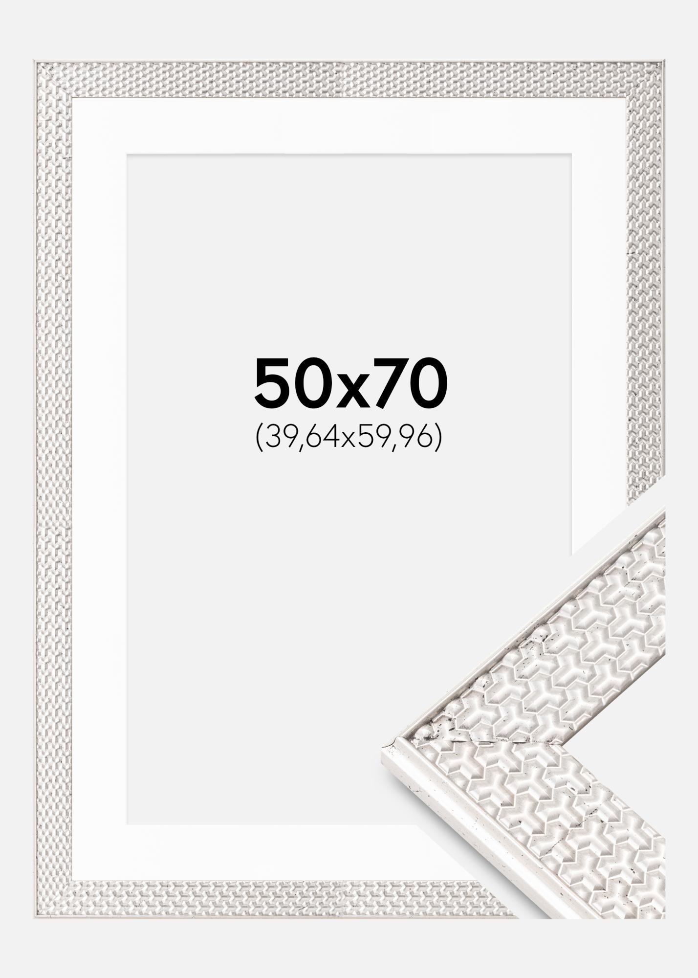 Marco Grace Plateado 50x70 cm - Paspartú Blanco 16x24 inches
