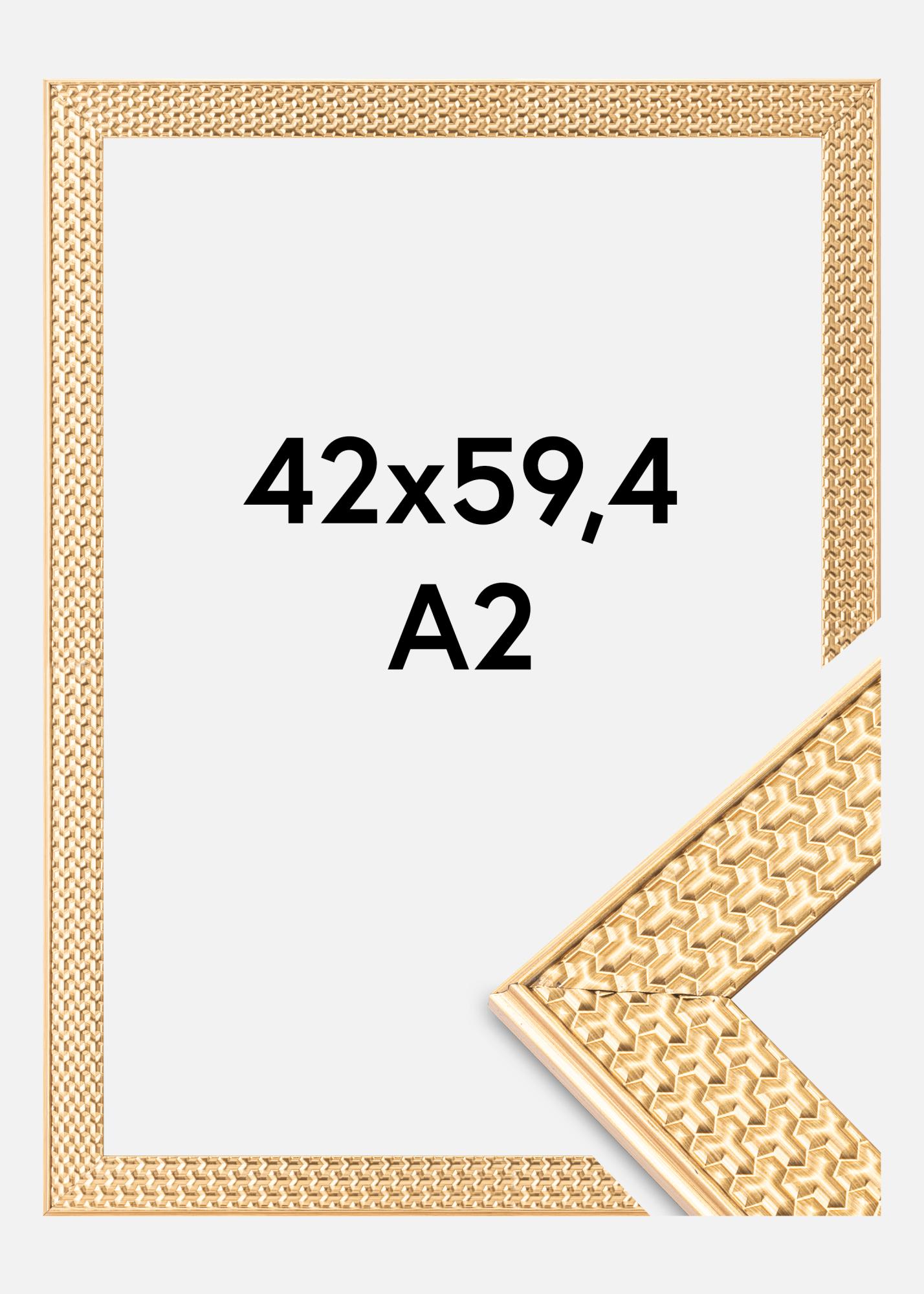Para garantizar la protección de tu obra de arte, el marco está equipado con un vidrio acrílico cristalino y resistente a la rotura. Además, el acrílico tiene una película protectora en ambos lados que se puede quitar fácilmente antes de colocar tu imagen en el marco. Este marco para fotos de 42 x 59,4 cm es la solución perfecta para resaltar tus imágenes en tamaño A2 con un toque de brillo dorado.