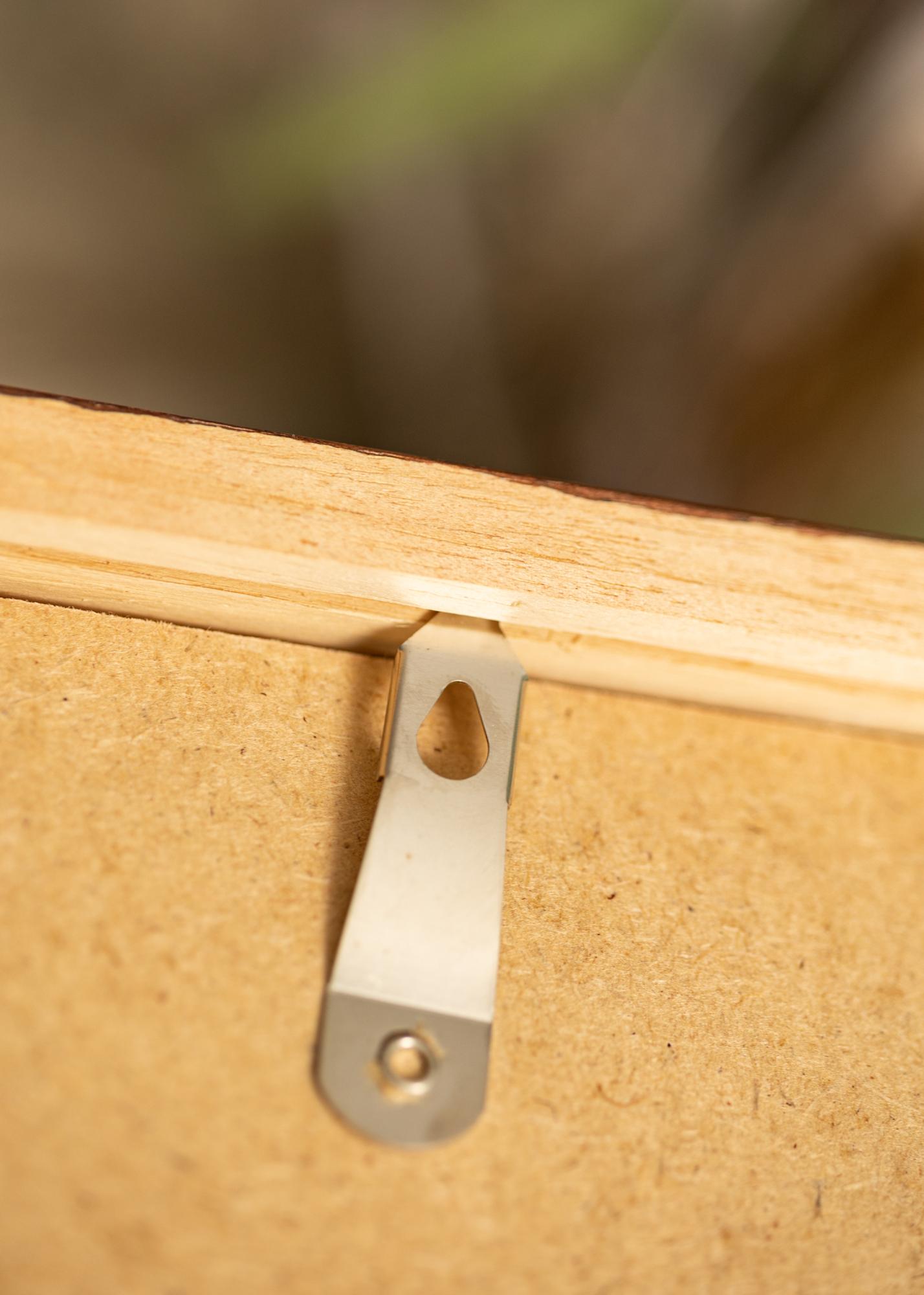 Con un perfil de marco de 19,6 mm de ancho y 25 mm de profundidad, este marco ofrece un enmarcado robusto y elegante. Está equipado con colgadores de metal en la parte posterior, lo que facilita colgarlo tanto horizontal como verticalmente, dependiendo de lo que mejor se adapte a tu espacio.