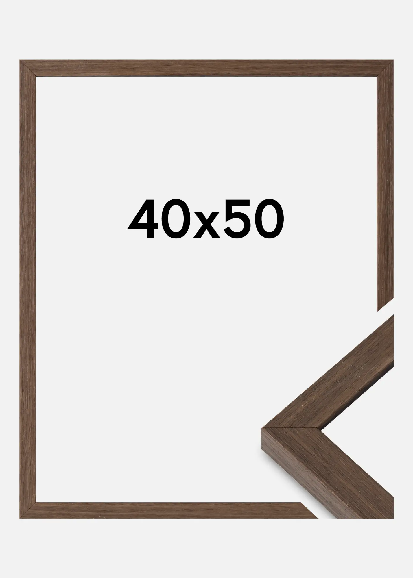 Crea una elegante pared de cuadros con este marco de fotos de estilo moderno en el tamaño de 40x50 cm. El acabado en patrón de nogal del marco brinda una impresión cálida y clásica que complementa tanto interiores modernos como tradicionales. Con una moldura de 19,6 mm de ancho y una profundidad de 25 mm, este marco ofrece una sensación distinta y resistente a tus imágenes o obras de arte favoritas.
