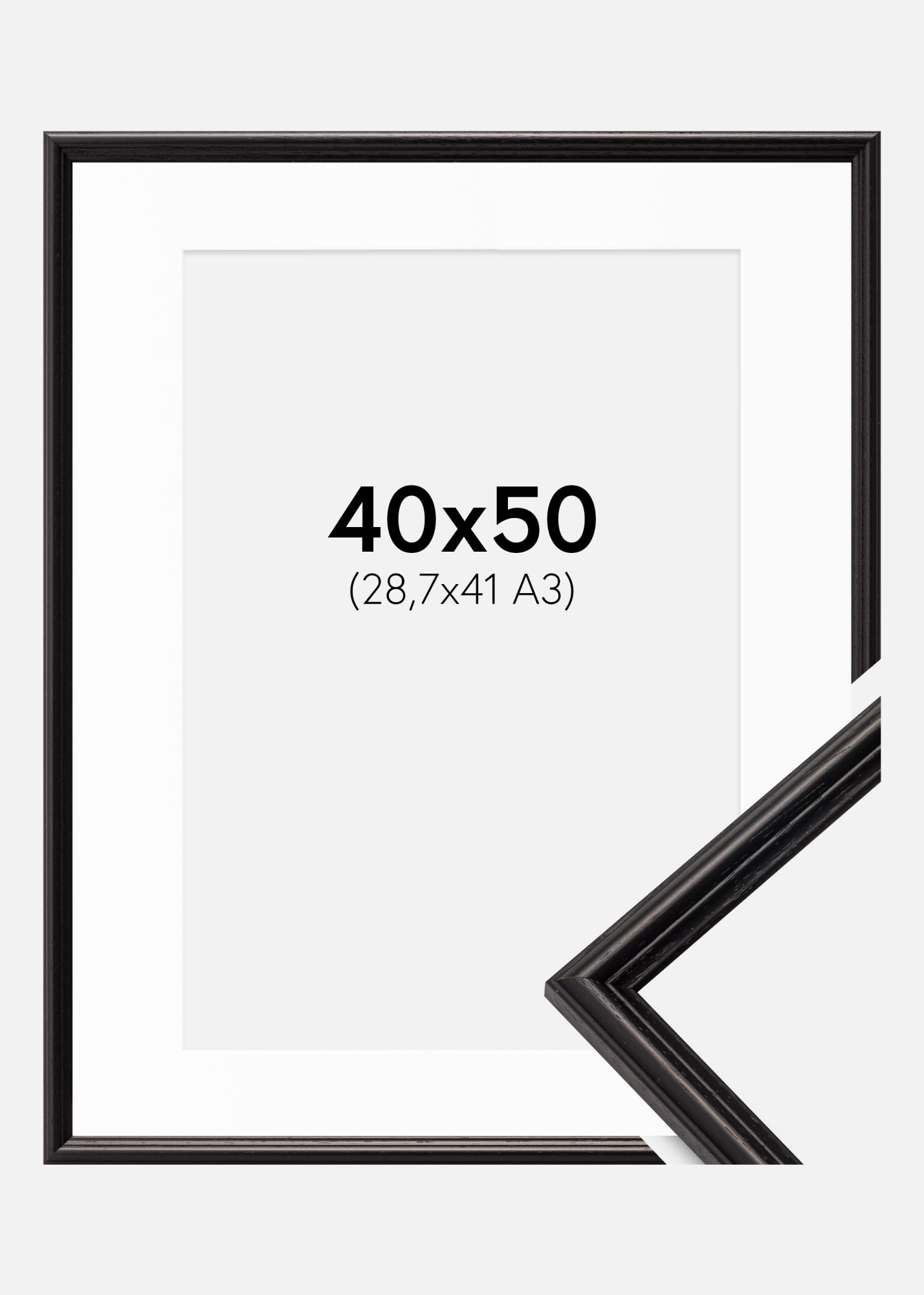 Marco Horndal Negro 40x50 cm - Paspartú Blanco 29,7x42 cm (A3)